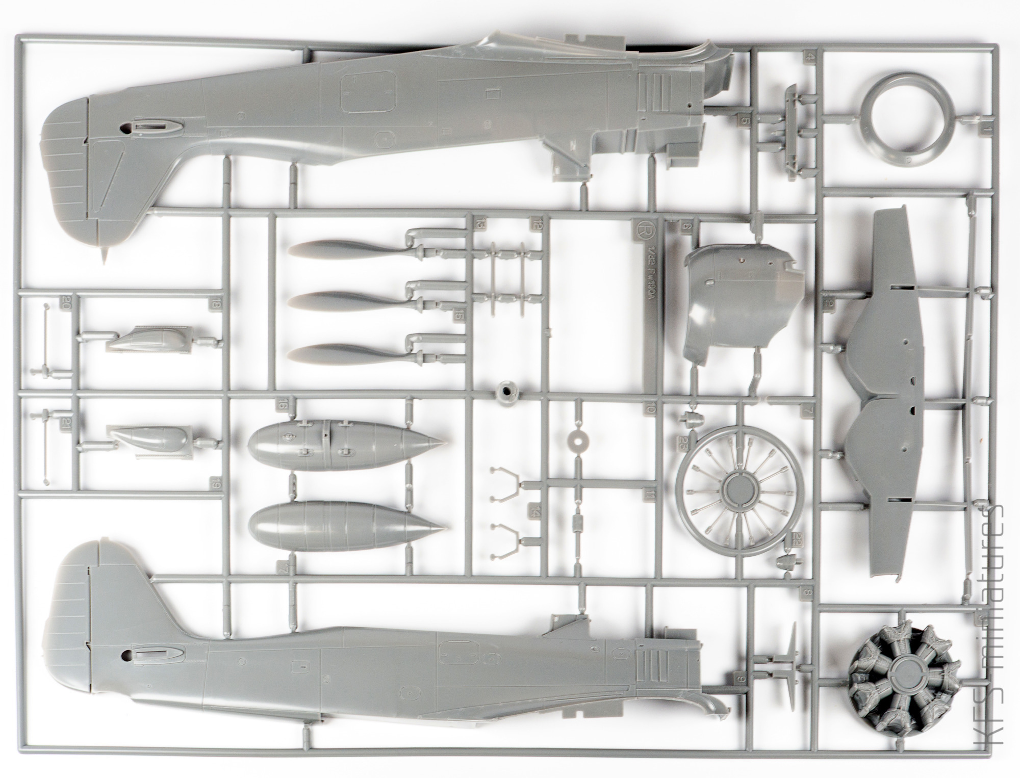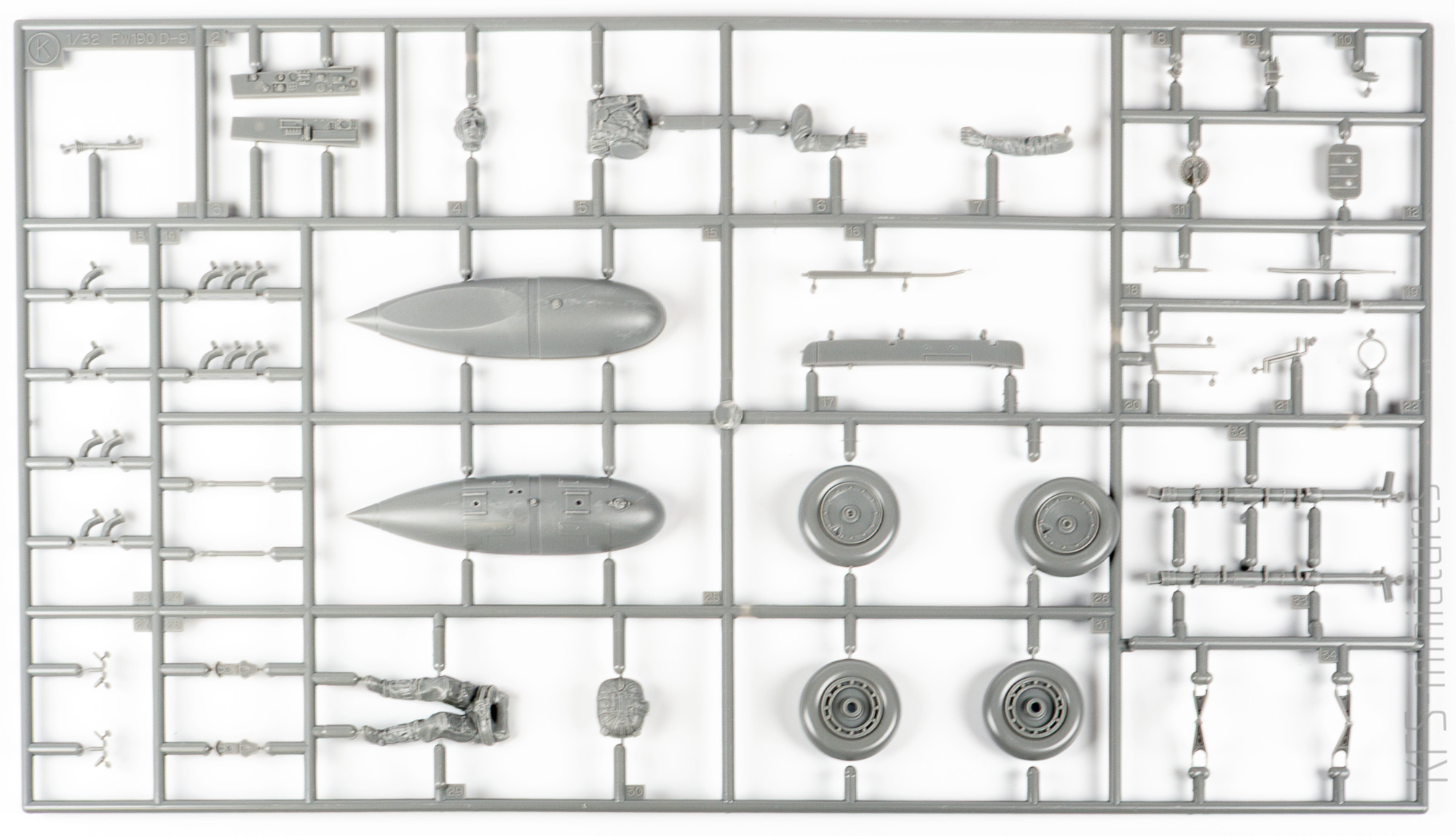 Ciekawostką jest to, że wypraski oznaczone są jako elementy Fw 190 D-9. A przynajmniej dotyczy to części płata i drobniejszych komponentów kokpitu. Taka tam mała podróż między wersjami.