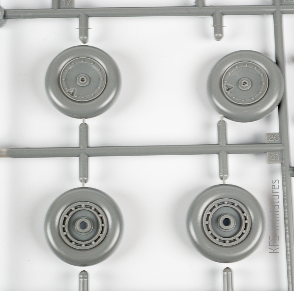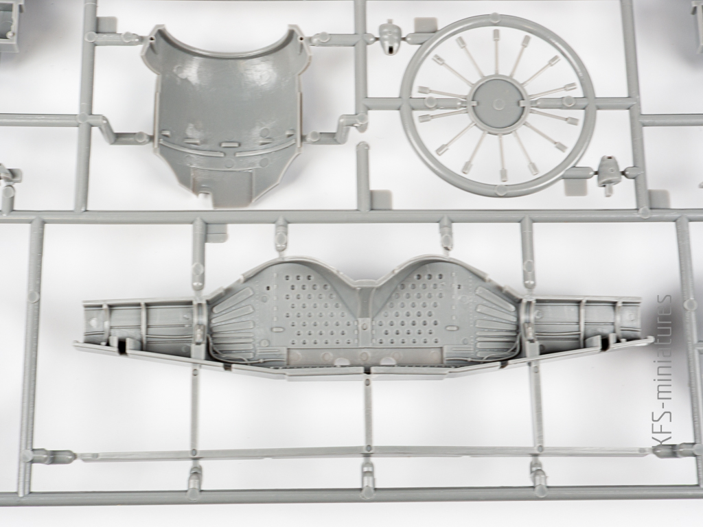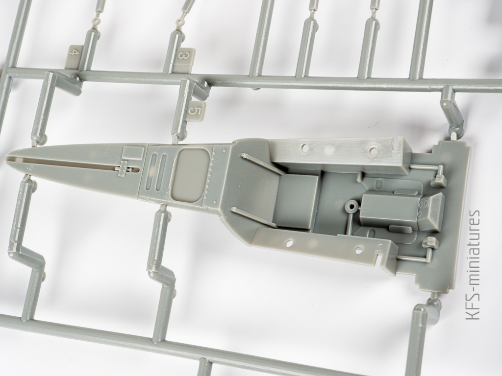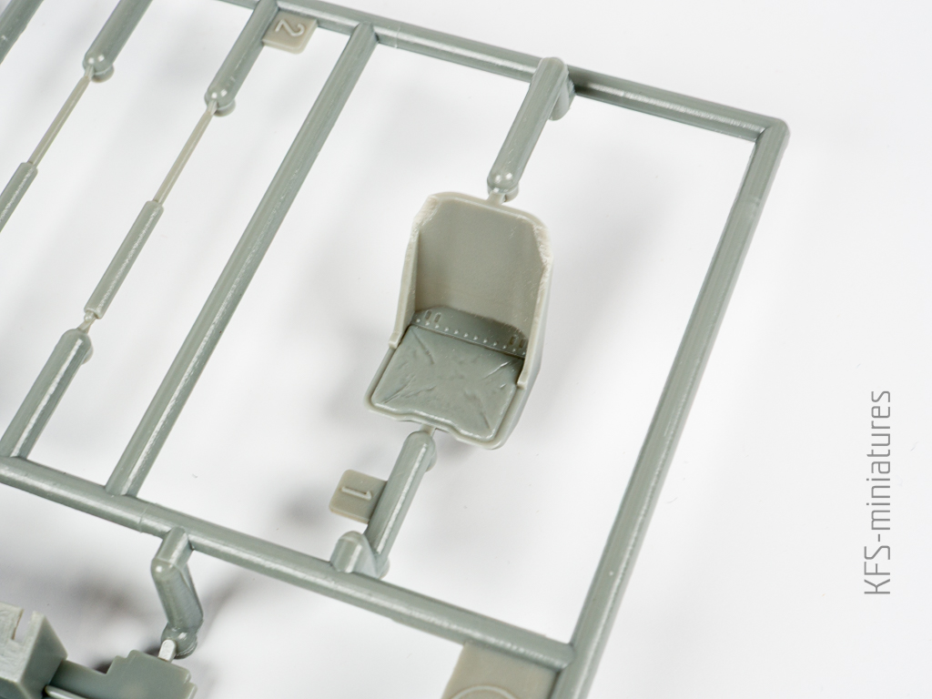 Wanna i fotel pilota? Cóż… są. Zdecydowanie zbyt ubogie jak na skalę 1/32, ale jeśli składamy model z zamkniętą kabiną, to i tak niewiele tam widać. Po uzupełnieniu o jakieś imitacje pasów fotela pilota można więc śmiało lepić prosto z pudełka.