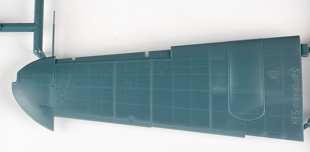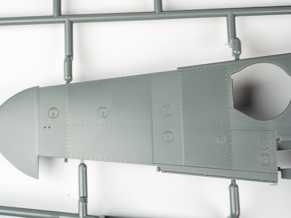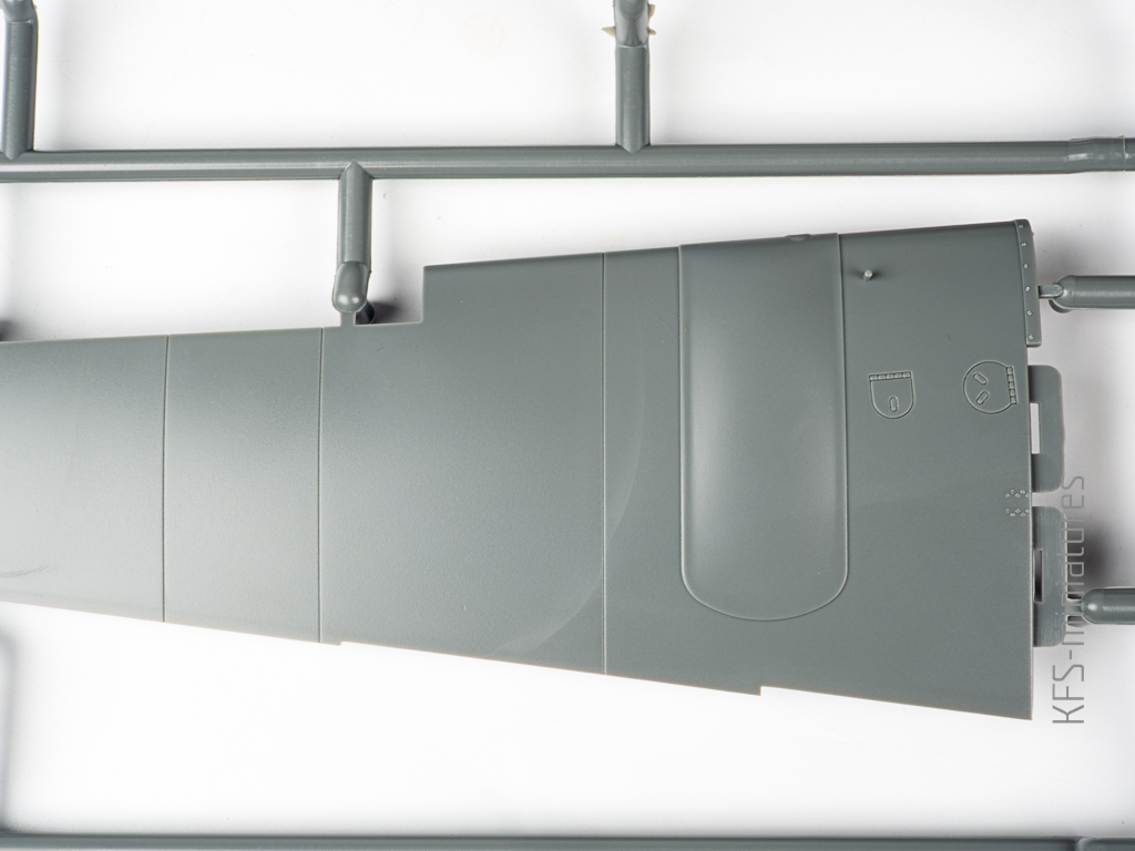 To nie koniec. Płat wygląda równie biednie. I nie, nie kupuje narracji producenta, że to ukłon w stronę modelarzy, którzy nie lubią ponitowanych modeli. Gdyby ta grupa odbiorców miała znaczenie sprzedażowe, Eduard wydawałby swoje modele jeszcze gładsze… Jeśli nie wiadomo o co chodzi to chodzi o pieniądze. Bez nitów jest po prostu taniej….