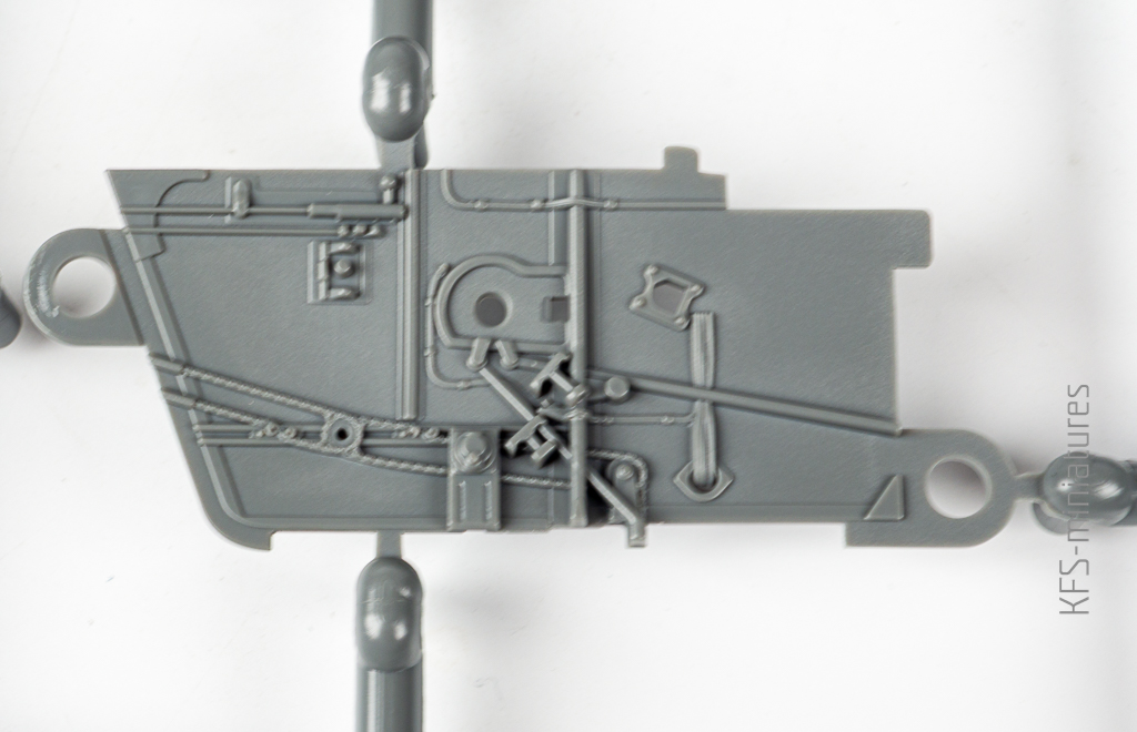Detale na ścianach kokpitu wyraźne, fajne tylko że… no właśnie tak wyglądały “wingnutowe” modele. Pozornie ostre szczegóły. Ale właśnie – tylko pozornie, bo przecież odlane w jednym kawałku, więc dobrze wygląda tylko z jednej strony, gdy patrzy się na to wszystko od frontu. Tymczasem kokpit oglądamy głównie z góry… O tym, że jest trudny do pomalowania nie musze chyba wspominać? Okazuje się, że to co miało rację bytu w przypadku szmatopłatów, nie specjalnie aplikuje się na maszyny z drugiej wojny.