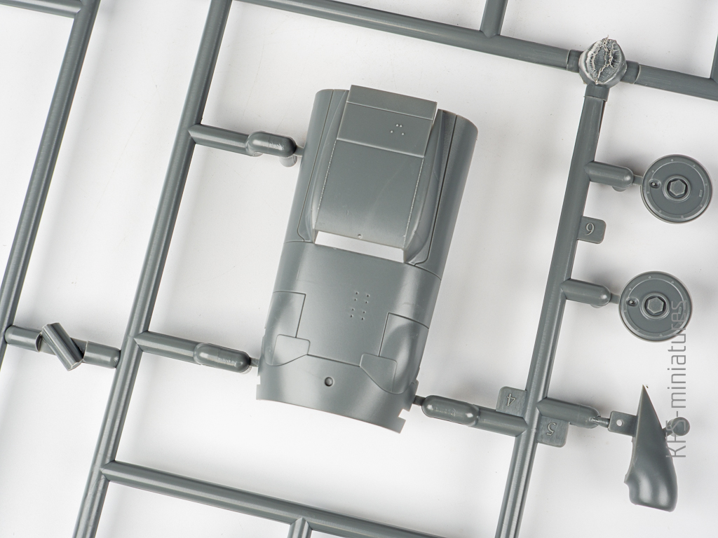 A co w pudełku? Cztery ramki z szarego plastiku, jedna przeźroczysta, instrukcja, kalkomanie od Cartografa.
