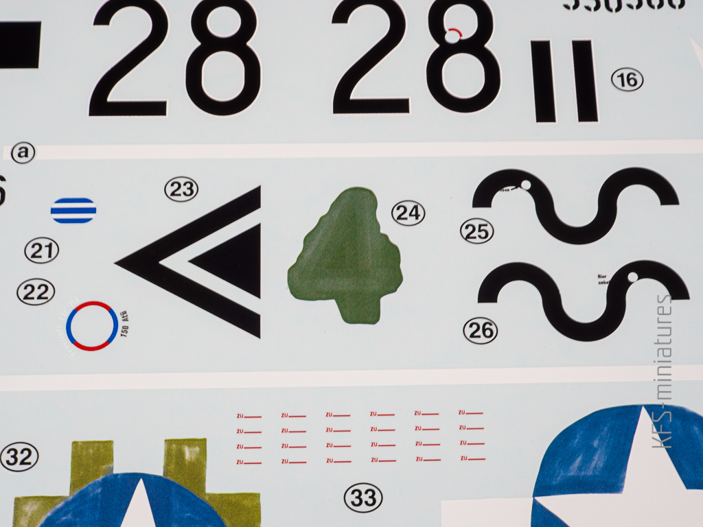 Do tych schematów malowania oczywiście dorzucono odpowiednie kalkomanie. I to nie byle jakie – bo wydrukowane przez Cartografa. Wyglądają całkiem przyzwoicie, nie rażą ani kolorem, ani ostrością detali. Choć przyznam, że mam pewne wątpliwości co do naturalności odwzorowania ręcznie malowanych znaków na trofejnym Kurfürście – trochę to wygląda zbyt sterylnie, jak na coś, co w oryginale było raczej chaotycznym bazgrołem, niż kaligrafią.