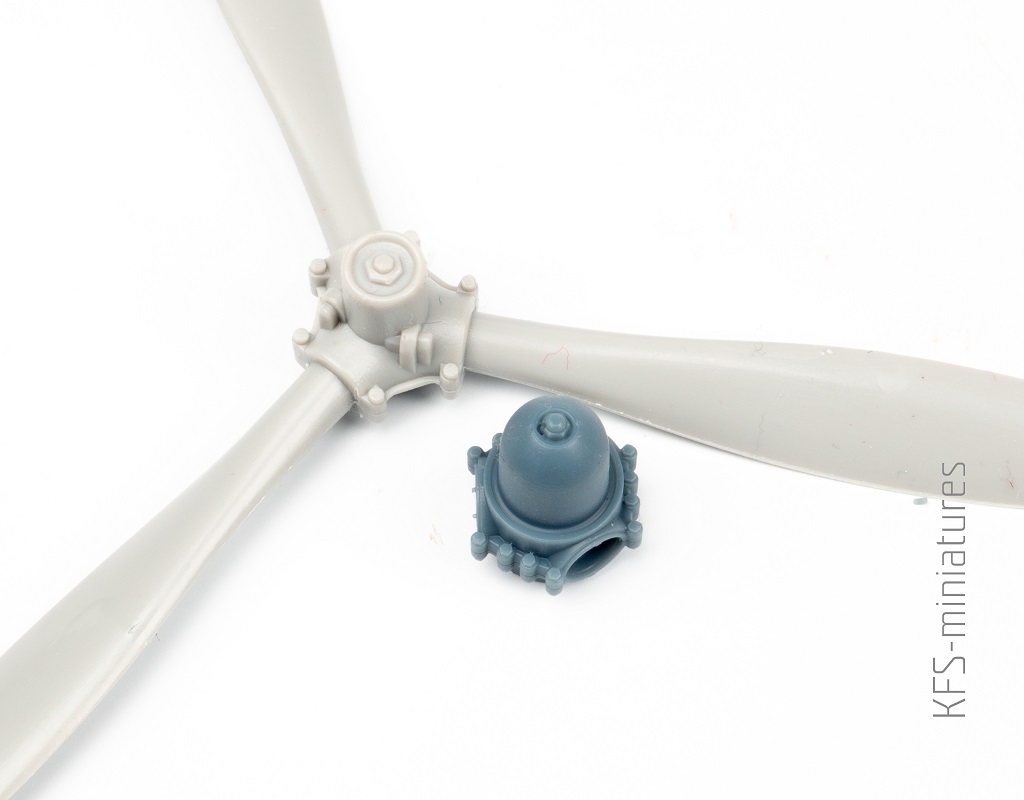 I od piasty zacznijmy – o ile wygląda lepiej niż element zestawowy, to fakt iż producent nie dodał do niej łopat śmigła dyskwalifikuje ją jako potencjalny zamiennik. O ile bowiem wydruk silnika przyspiesza i ułatwia pracę, to przeszczepianie łopat plastikowych do nowej piasty gwarantuje godziny niepotrzebnej roboty. Szczególnie, że sama piasta i tak schowa się pod kołpakiem.