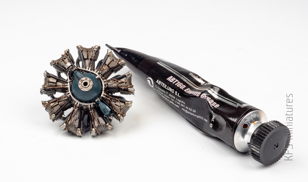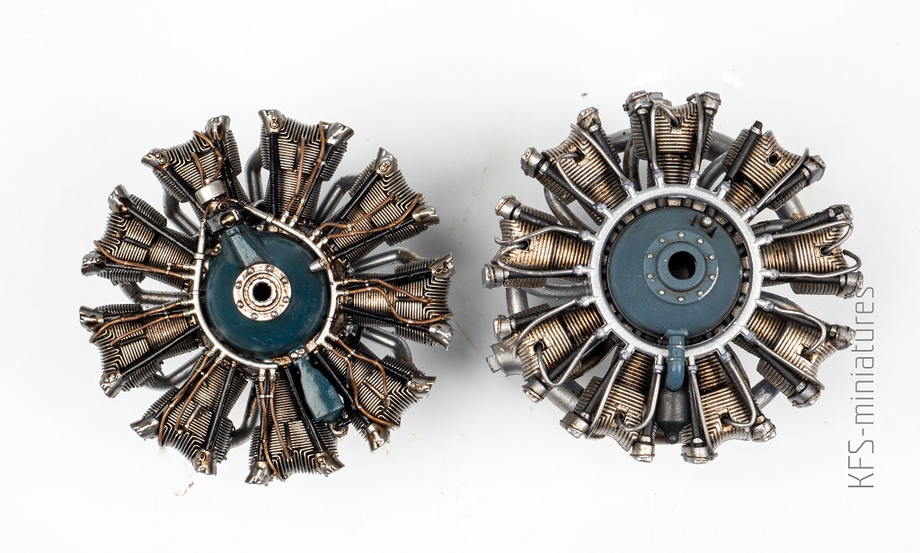 Izolacje przewodów w R-1820 były w kolorze brązowym/khaki – pomalowałem je mieszanką farb Tan Earth i Dark Brown od AK.