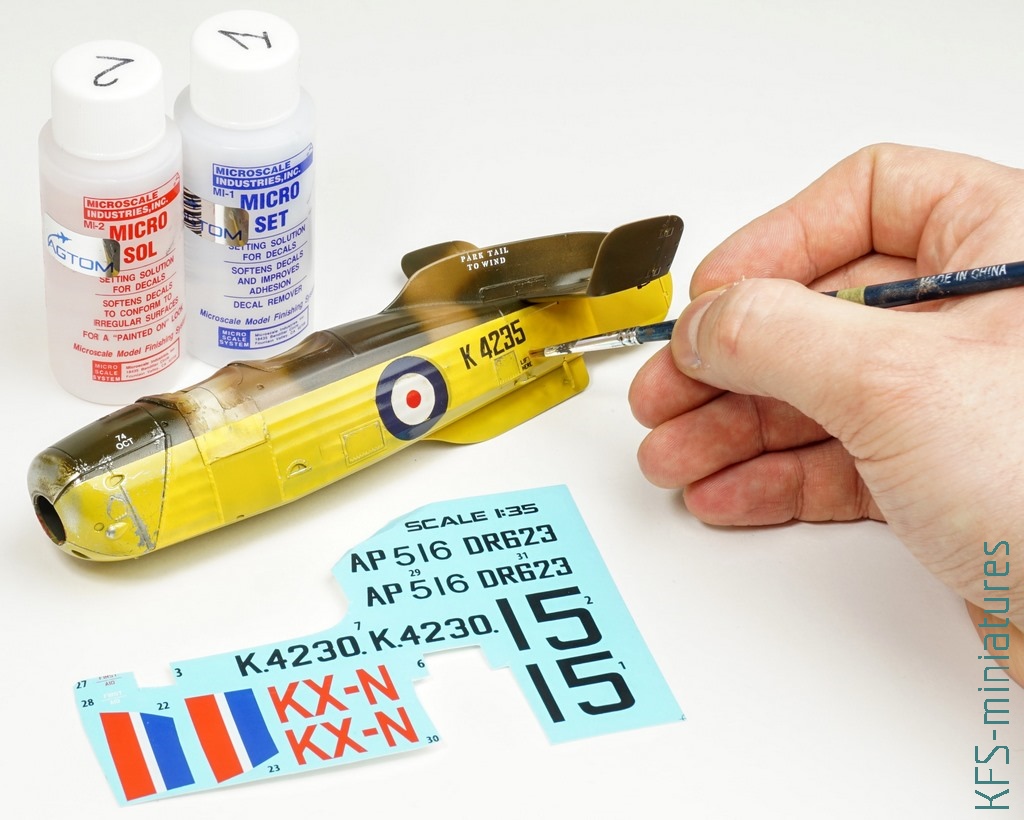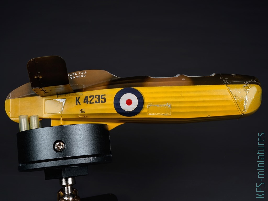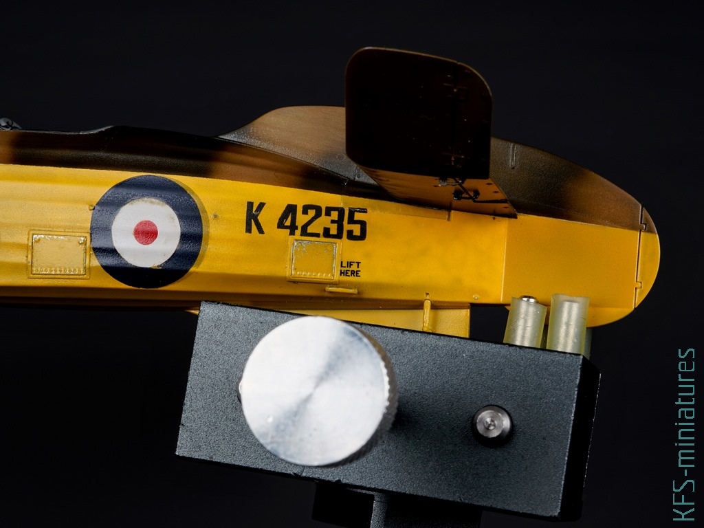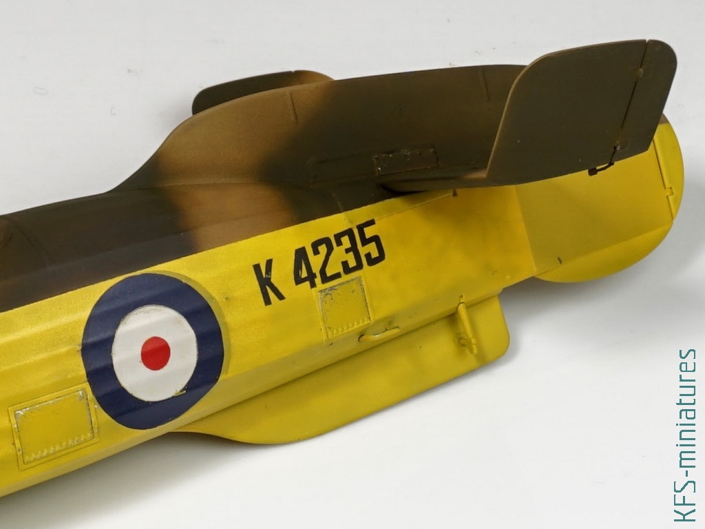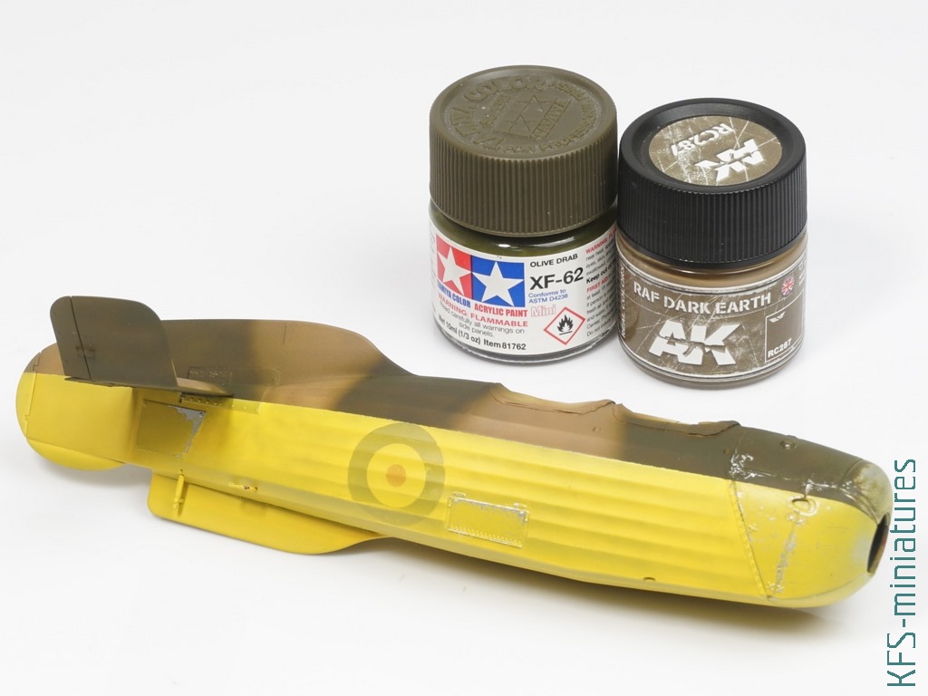 W tym temacie popełniłem dwa błędy przy tej budowie. Po pierwsze pomalowałem większość modelu żółtą farbą z palety Hataka Orange (o tym więcej w dalszej części tekstu), tylko nie wiem dokładnie którą, a że popełniłem błąd przy maskowaniu (zamaskowałem “framugę” drzwiczek pilota, która również powinna być żółta), to pasowałoby zrobić podmalówki. Żółte kolory mają to do siebie, że dosyć mocno się od siebie różnią, więc musiałbym teraz kupić kilka i próbować na boku, testując kolor.