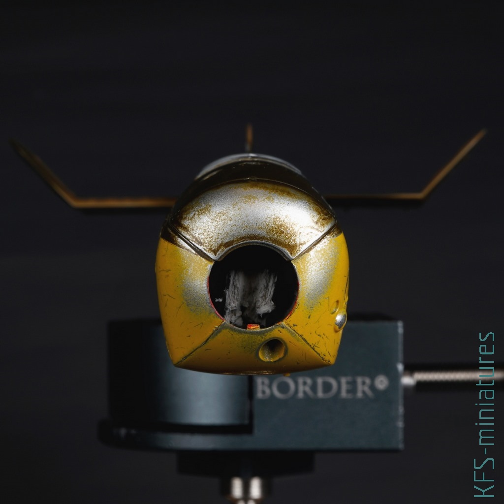 … i to był gwóźdź do trumny palety Hataka Orange na moim warsztacie. Choć nie to, że zareagowały z klejem od masek było głównym powodem, bo denerwowały mnie już wcześniej. Moim zdaniem ich największą wadą są: słabe krycie jasnych kolorów (jak powyższy żółty, którego dałem chyba 7 warstw) i rozwarstwianie się farby przy bardzo dużych rozcieńczeniach. Tę ostatnią bolączkę odkryłem już przy okazji malowania Kolibri.