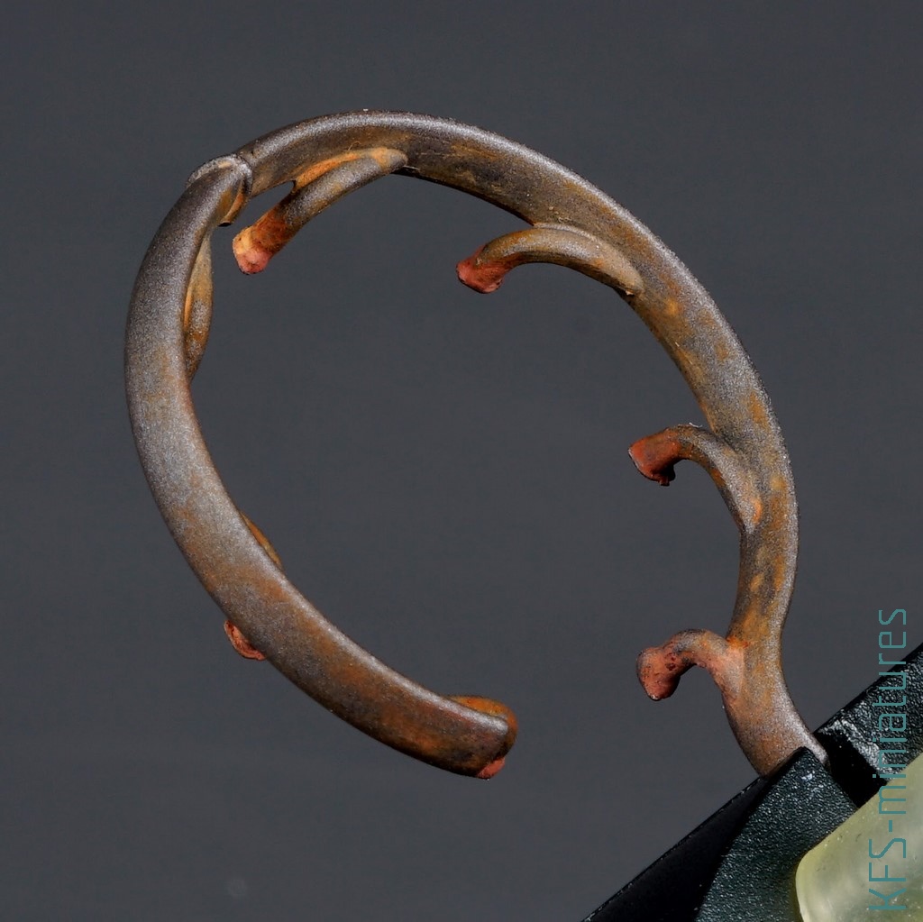 W tym konkretnym przypadku, chipping Ammo spowodował, że moje subtelne (w planach) zdrapki na elementach metalowych, zakończyły się tak, jak widać powyżej. Farba zaczęła dosłownie spływać z metalizera, który był pod chipping fluidem. Oceńcie sami, ja byłem – mówiąc delikatnie – niezbyt zadowolony.