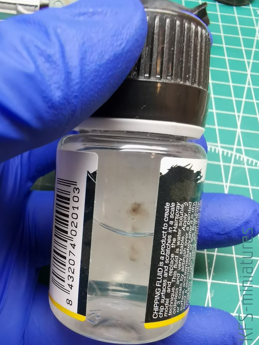 Ja, korzystając z tej zasady, pozbyłem się kolejnego produktu Ammo z mojego warsztatu, a dokładnie Chipping Fluidu. Co ciekawe, już wtedy do zdrapek używałem z powodzeniem lakieru do włosów polecanego przez KFSa, a kupionego w osiedlowym “Lewatywianie”: