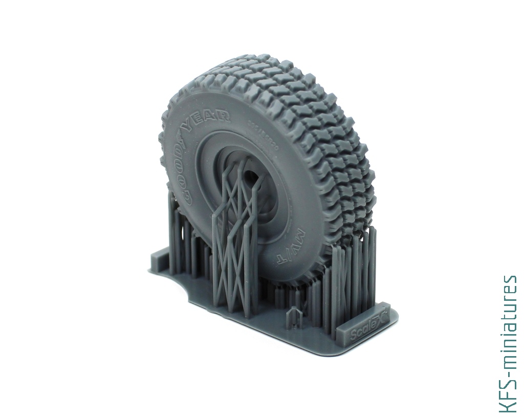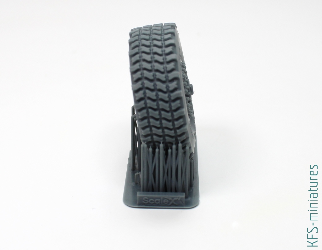 Znana nam już z wcześniejszych recenzji żywicznych zamienników firma ScaleX, ma w swojej ofercie kilka kompletów zamienników kół do miniatury HIMARSa z ForeArt. Podobnie jak w przypadku zestawów do Land Rovera są to zarówno różne typy, jak i warianty z imitacją ugięcia opony jak i jej pozbawione. W moje ręce trafił komplet kół podobnych do tych, które spotkać można w polskich wersjach HIMARSa