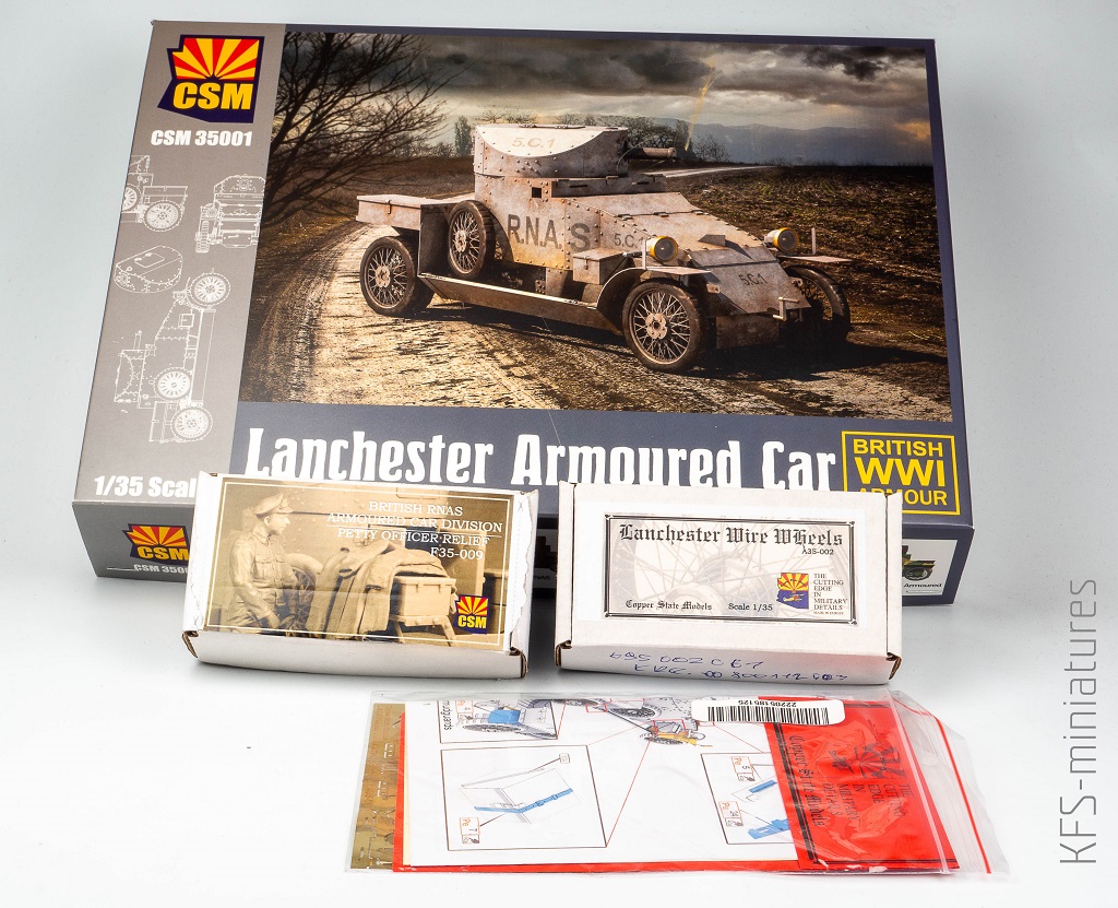 Uważam się za modelarza lotniczego, pojazdy średnio mnie kręcą. Model CSM to wyjątek z dwóch powodów, po pierwsze Lanchester to pojazd z wielkiej wojny, a po drugie to w sumie pojazd okołolotniczy. Lanchester powstał w odpowiedzi na zapotrzebowanie Royal Navy Air Service (RNAS), a jego głównym zadaniem miało być ratowanie pilotów zestrzelonych za liniami wroga. Model w wersji prosto z pudełka wydaje się zawierać wszystko to, co konieczne, aby zbudować fajną miniaturę tego pojazdu. Jedyną rzeczą wartą wymiany są szprychowe koła, ale CSM ma w swojej ofercie stosowny dodatek w postaci wydruku 3D.