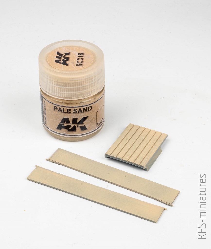 Podłogę i drewniane osłony-błotniki pomalowałem farbą RC018 Pale Sand z palety Real Colors AK-Interactive.