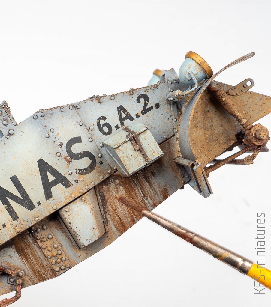 Zabezpieczyłem całość matowym werniksem i dodałem kilka plam olejami ABT150 Field Grey, ABT015 Shadow Brown i ABT510 Starship Filth tego samego producenta.