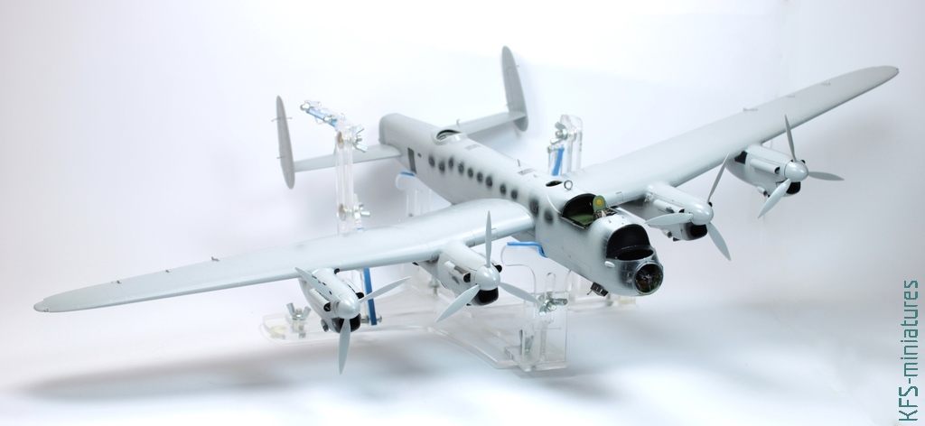 Dodatkowo zamierzałem wykonać ją z “plusem za polskie malowanie”, na co pozwolił zestaw kalkomanii z Techmodu dedykowany Lancasterom B Mk.III – w praktyce jednak różnice między Mk.I i III sprowadzają się do wersji zastosowanych silników, zaś inne różnorakie detale związane są z okresem produkcji danego egzemplarza (warto tu odnotować, że wiele Lancasterów było dość długowiecznych i w trakcie służby podczas remontów dokonywano w nich modyfikacji, które w międzyczasie wprowadziły na nowo budowanych maszynach fabryki)
