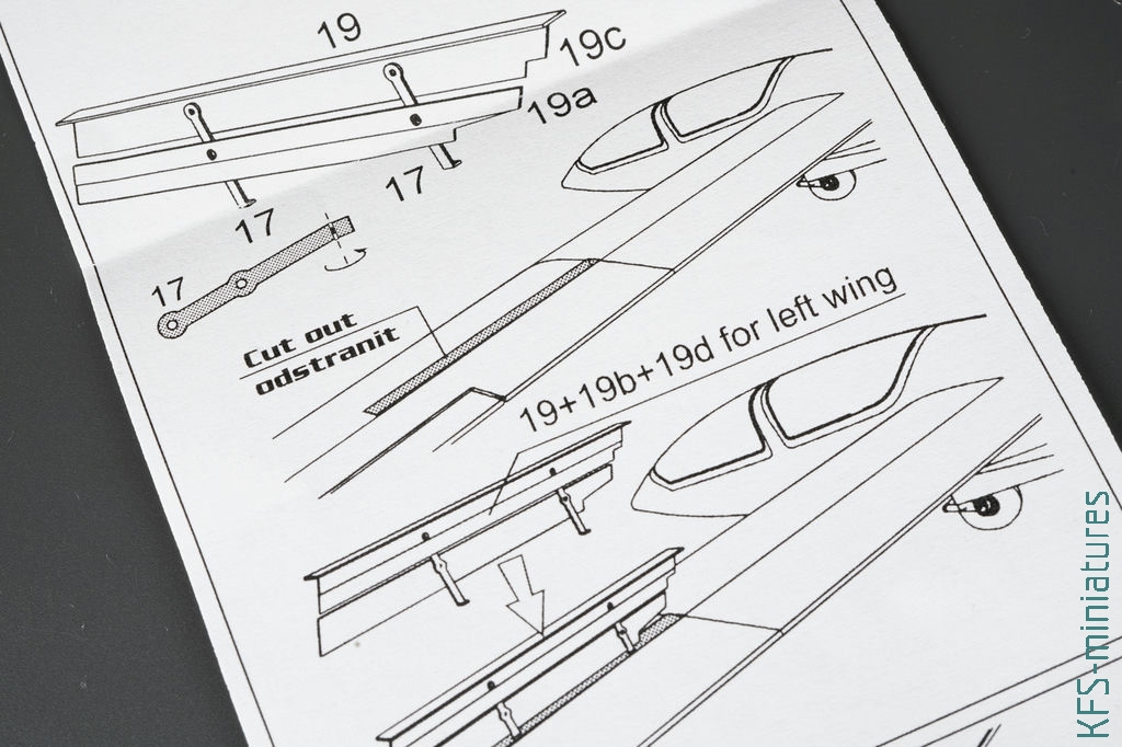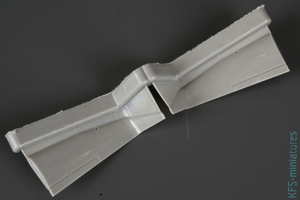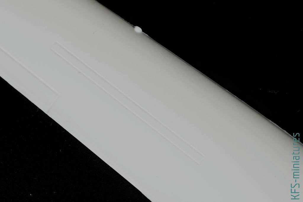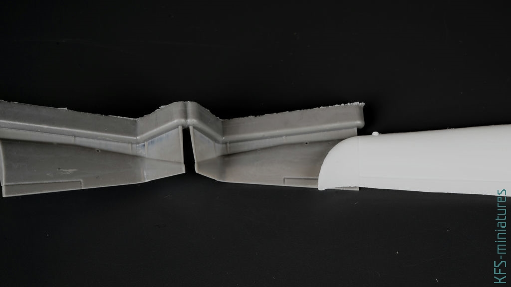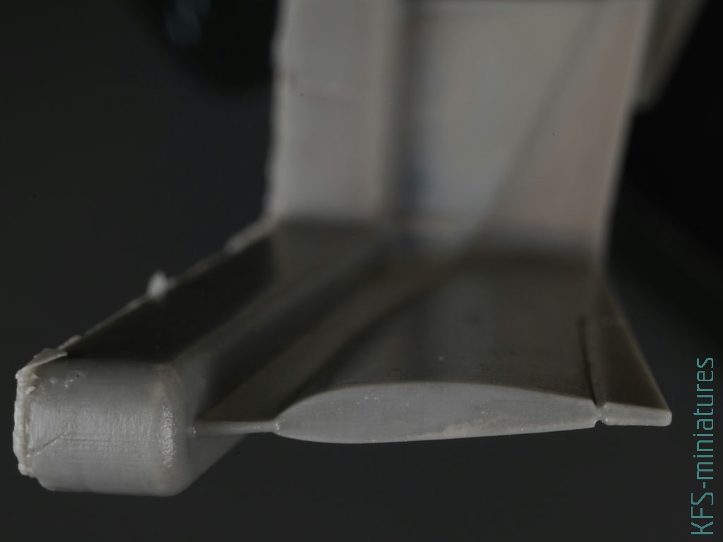Na pierwszy rzut oka nadmiernej filozofii w jego instalacji w modelu nie ma, ponieważ technicznie należy odciąć standardową końcówkę skrzydła, która oznaczona jest na modelu linią podziałową i dokleić zamiennik: