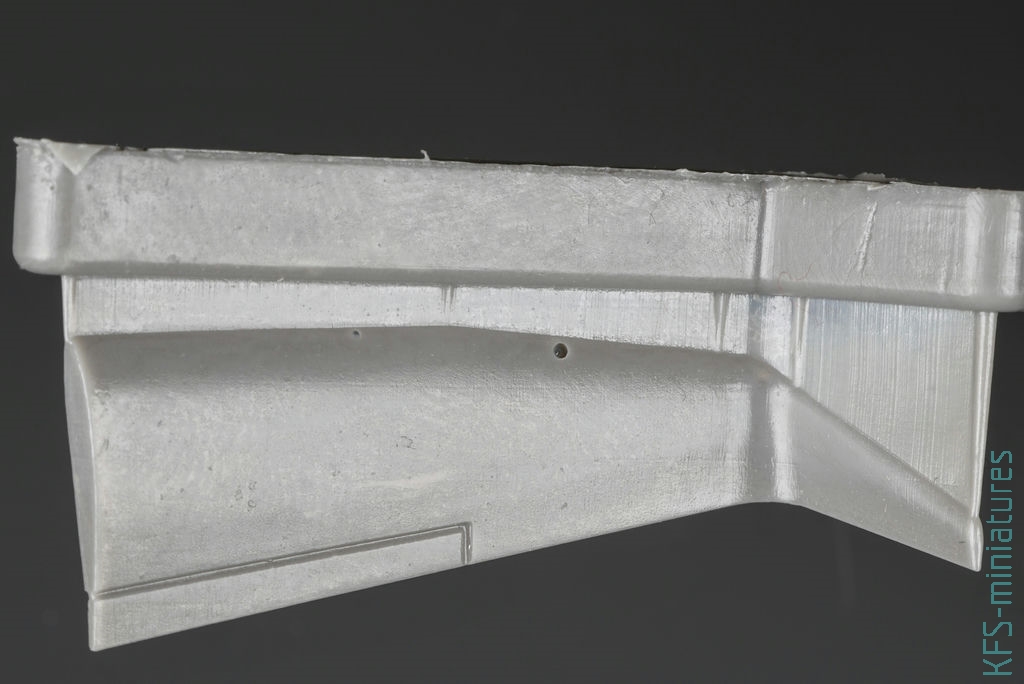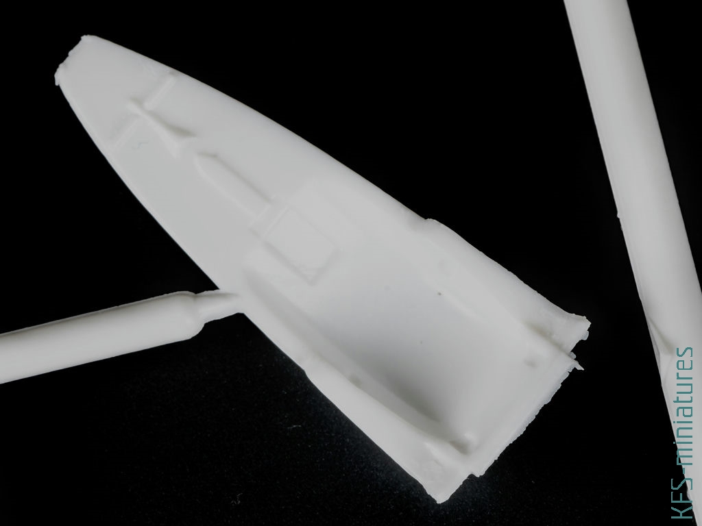 Jeżeli chodzi o samą jakość żywicy, to jest ona raczej przeciętna (u siebie znalazłem 3 widoczne gołym okiem bąble z czego dwa na wylot). Faktura jest taka sobie. Niezbyt bym się tym jednak przejmował, ponieważ i tak całe skrzydła wymagają pocienienia spływu, szpachlówki i polerki.