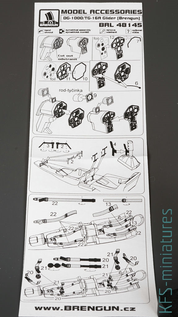 Wraz z premierą swojego pierwszego szybowca – DG-1000S AKVY, firma Brengun wypuściła do niego dwa, dość standardowe, zestawy waloryzujące, czyli blachę fototrawioną (wraz z kliszą), oraz zestaw masek do oszklenia.