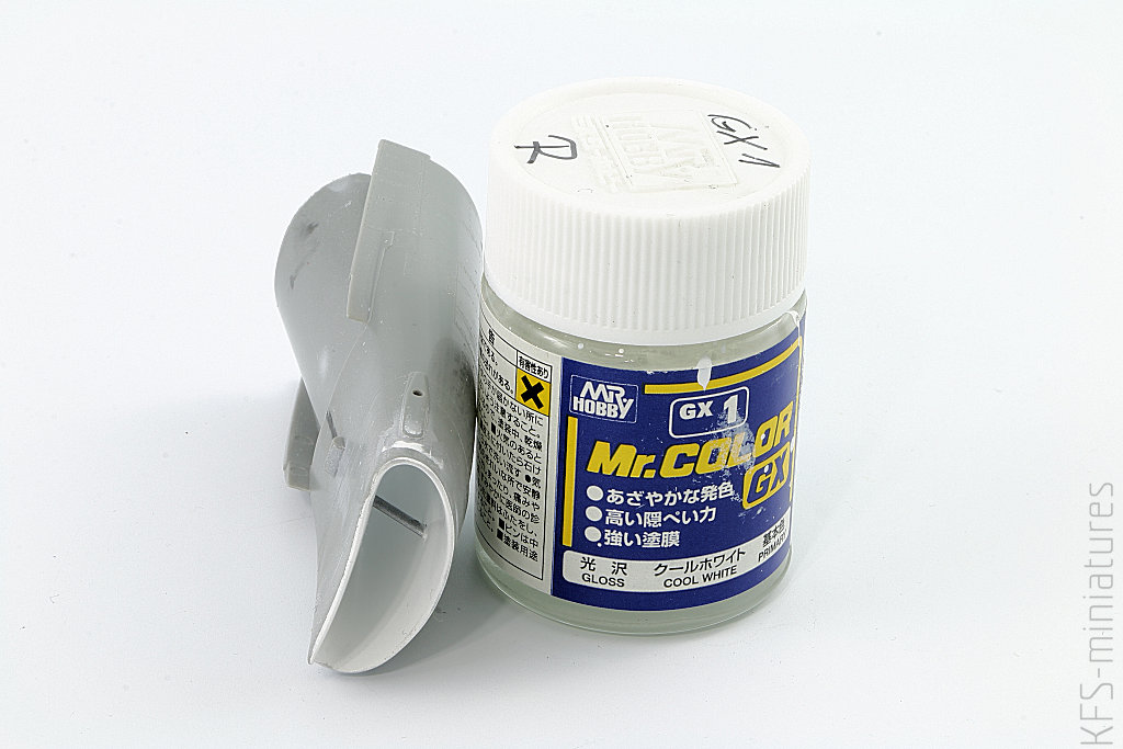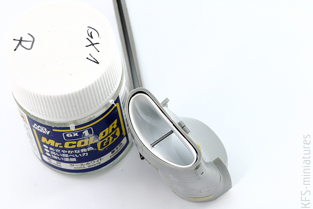 W następnym kroku pomalowałem te same powierzchnie docelowym lakierem, czyli Gunze GX-1 – bardzo błyszczącą bielą.