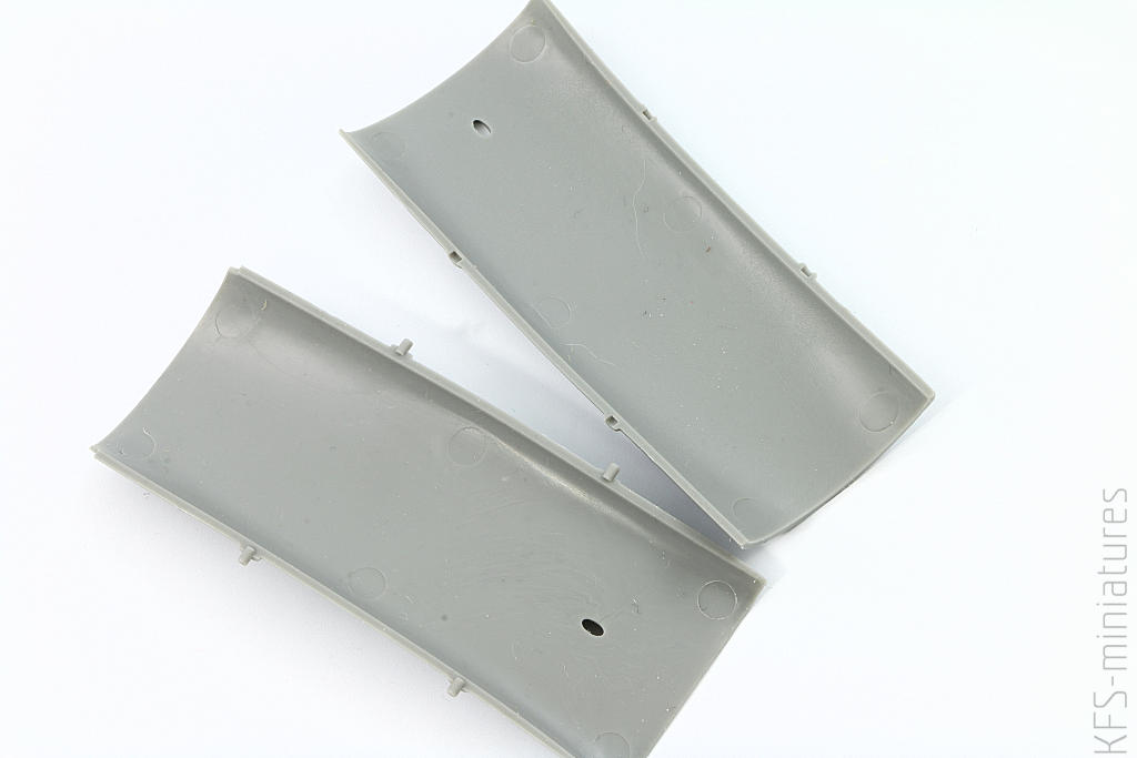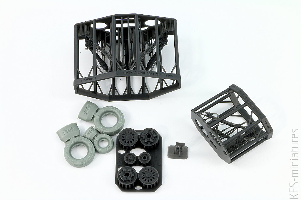 Naturalnie, produkt D&W Studio jest przeznaczony do zestawowych wnęk podwozia, a ja przecież użyłem eduardowskich zamienników. Mimo tego, rozkład otworów na poszczególne elementy podwozia pasowały do siebie. Konieczne okazało się jedynie dość znaczne pocienienie kołków mocujących wszystkich goleni, bo otwory na nie wykonane przez Eduarda były trochę za małe. Ale jeśli to się zrobi, wszystko pasuje bardzo dobrze.