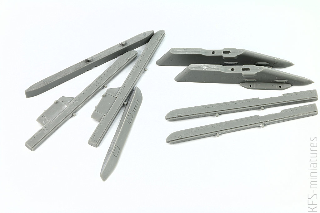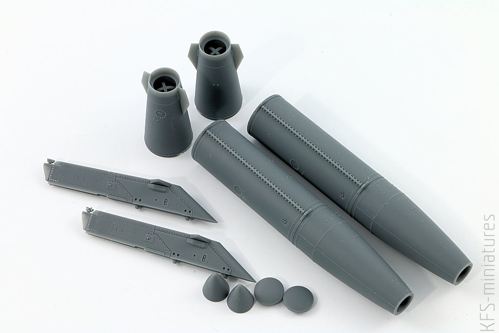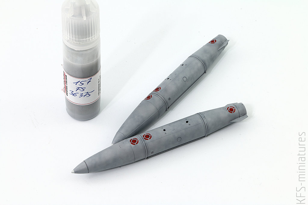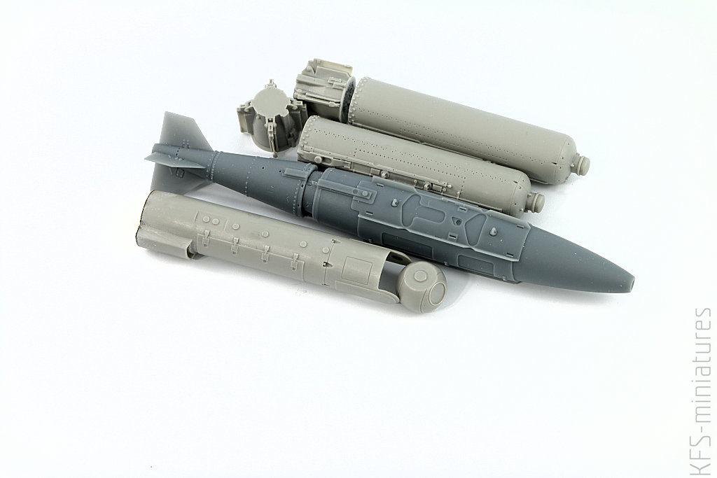 Powoli zacząłem przymierzać się do podwieszeń. Dla mojego F-16D wybrałem (raczej hipotetyczny niż realny) zestaw: 2xAIM-120C, 2xAIM-9M, GBU-31, 2xCBU-105 oraz zasobnik celowniczy AN/AAQ-28 Litening. Zacząłem przygotowywać części, najpierw uzbrojenia air-to-ground. Bomby CBU-105 oraz zasobnik Litening od Eduarda, a GBU-31 wybrałem od ResKita. Przy okazji przygotowałem i obrobiłem także pylony i wyrzutnie.