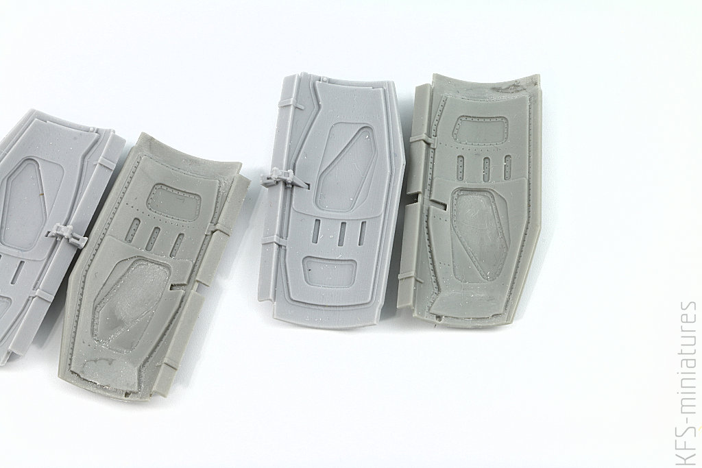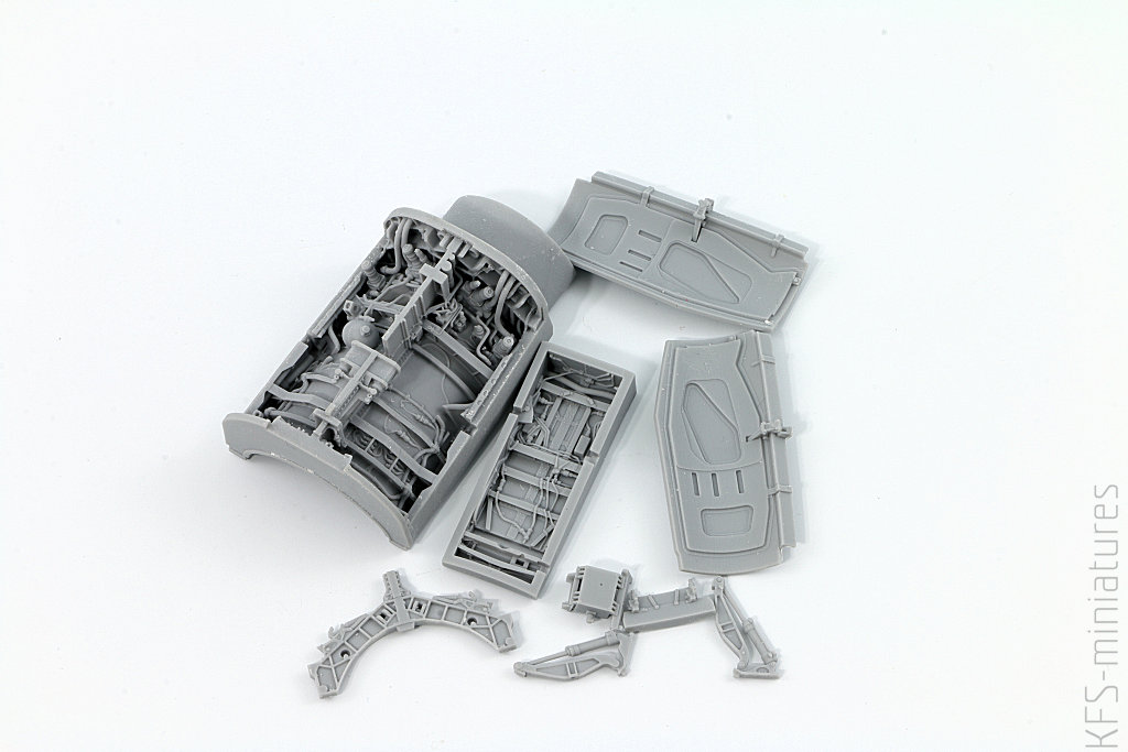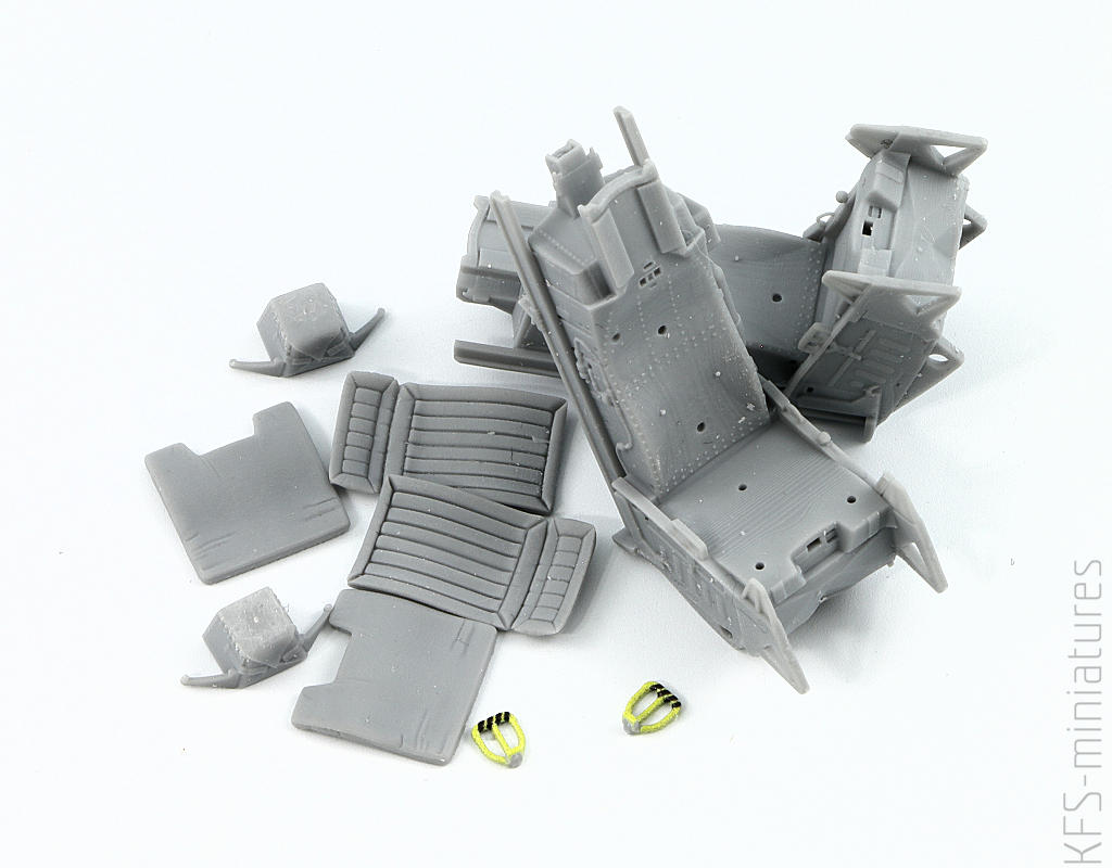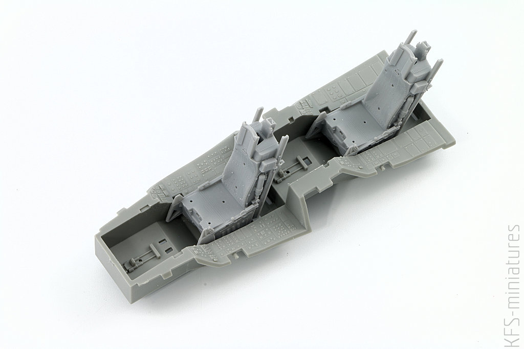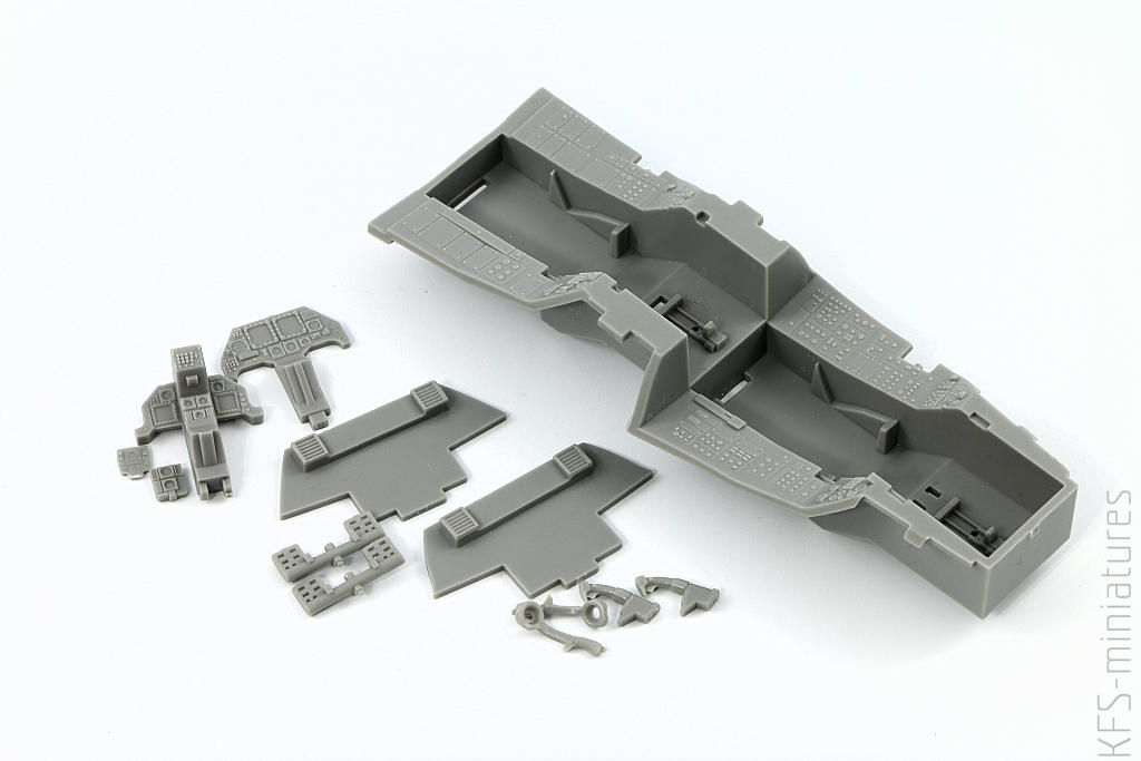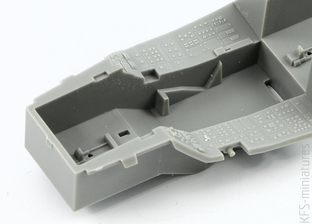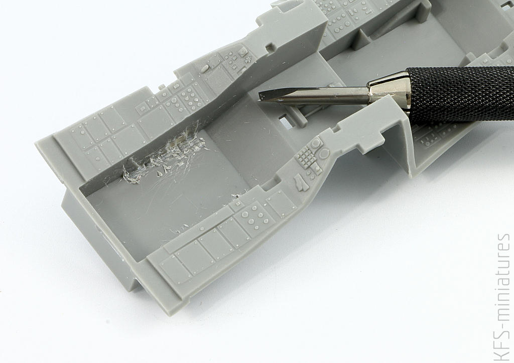 Prace zacząłem od wycięcia i obrobienia wszystkich zestawowych elementów wanny pilotów. Całkiem ładnie zdetalowanych elementów, które miałem jeszcze wzbogacić w przyszłości. Ale już tutaj widać pierwsze błędy merytoryczne zestawu. Tylna ścianka wanny w przedziale drugiego pilota jest identyczna ze ścianką z przedziału pierwszego. W rzeczywistości bardzo się one różnią.