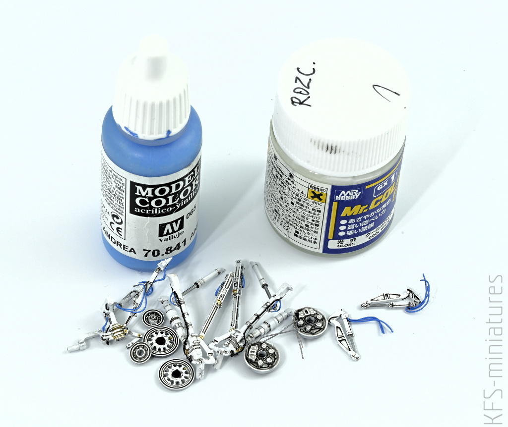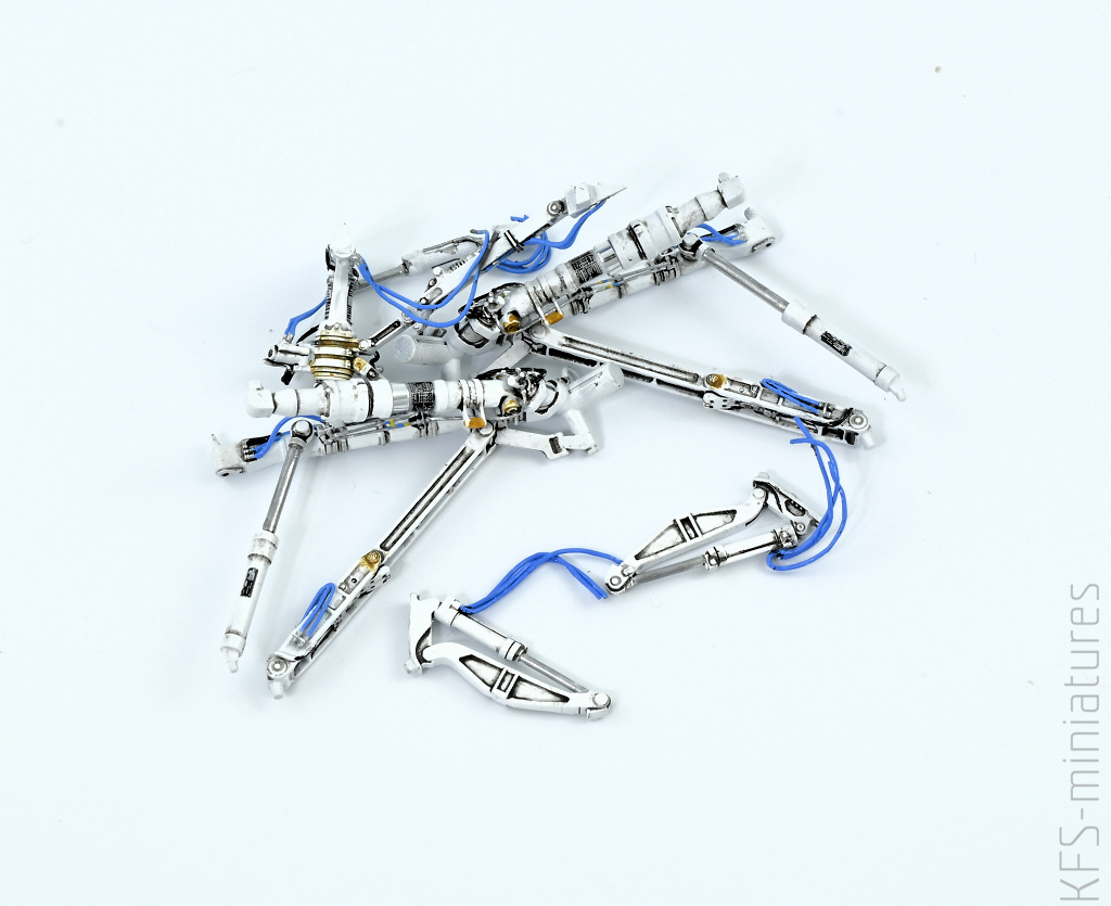 Okablowanie goleni pomalowałem zaś głównie niebieską ale też i czarną farba Vallejo Model Color. Całość podkreśliłem kontrastowym, czarnym washem.