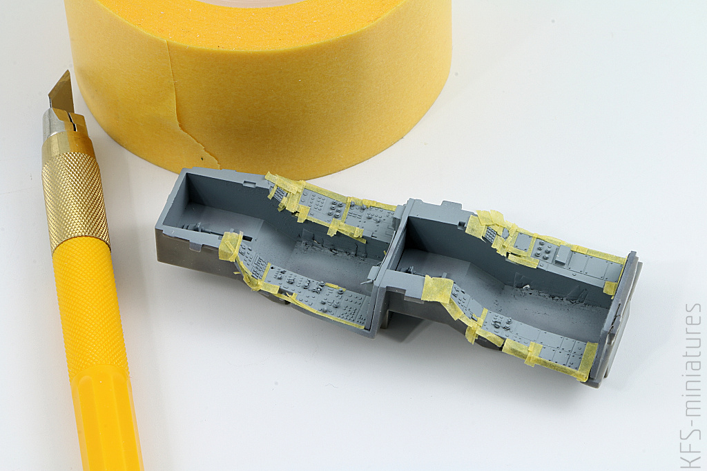 No i żeby nie kusić losu, od razu gotową kabinkę zabezpieczyłem taśmami maskującymi i Maskolem. Za dużo pracy mnie to wszystko kosztowało, żeby coś pobrudzić albo uszkodzić w trakcie dalszych zmagań z tą miniaturą.