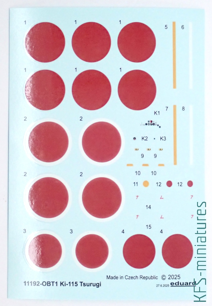 Załączony arkusz kalkomanii nie onieśmiela jakością. Jakość druku kółek Hinomaru przywołują z pamięci sławetne nalepki z zestawu Tora Tora Tora!