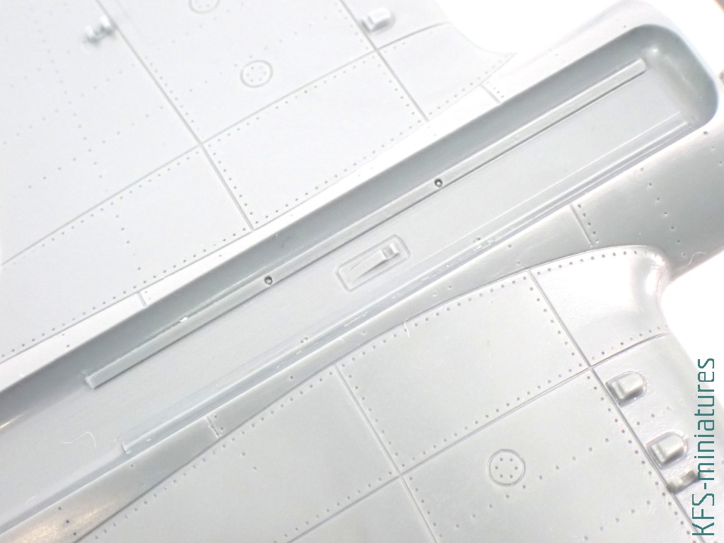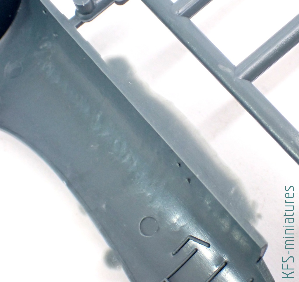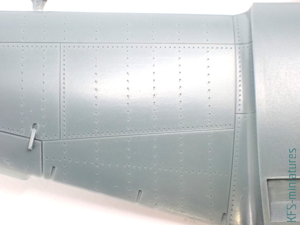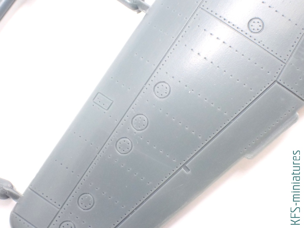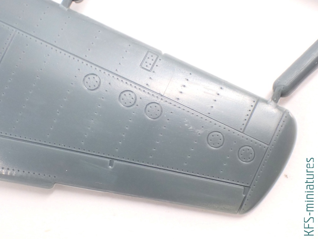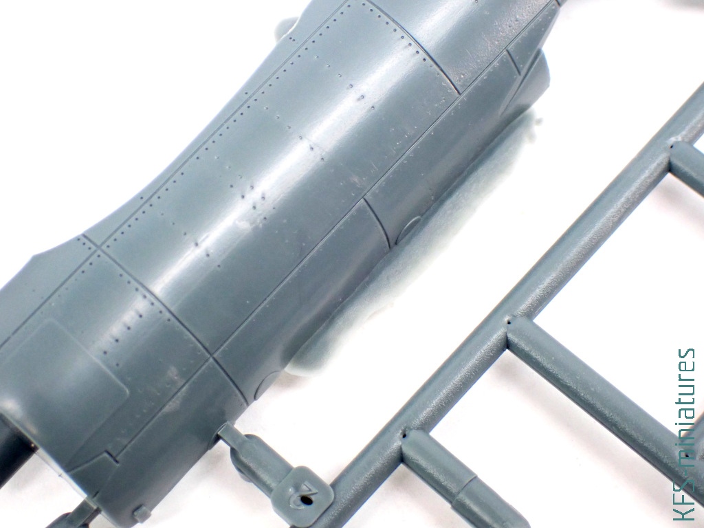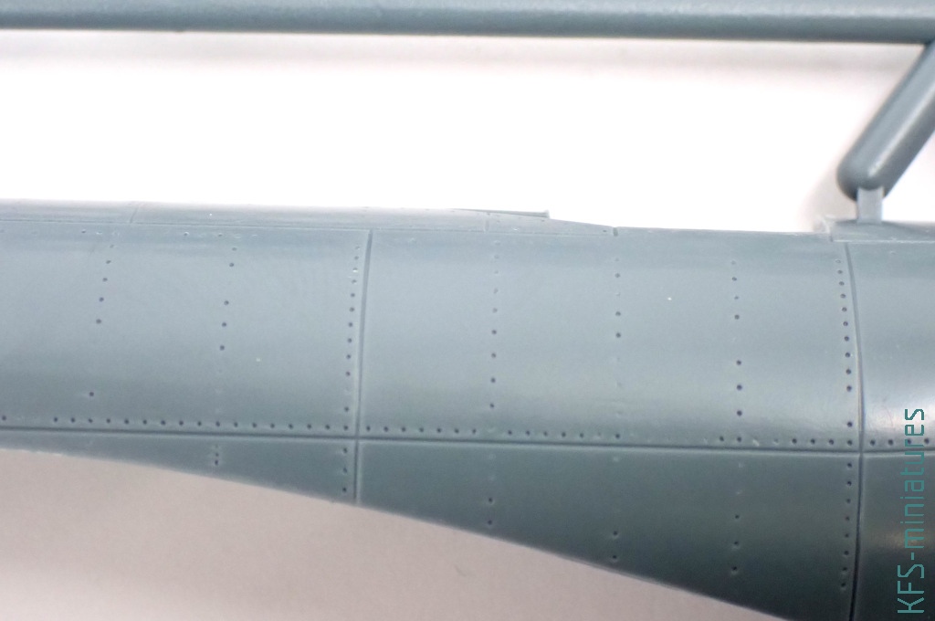 Wszystko wyjaśnia się po bliższym spojrzeniu. Bo co prawda metalowe powierzchnie samolotu zdobi imitacja nitowania, to miejscami to nitowanie zanika. Podobnie jak i linie podziału. A jak by tego było mało, to nie brakuje tu dość widowiskowych nadlewek