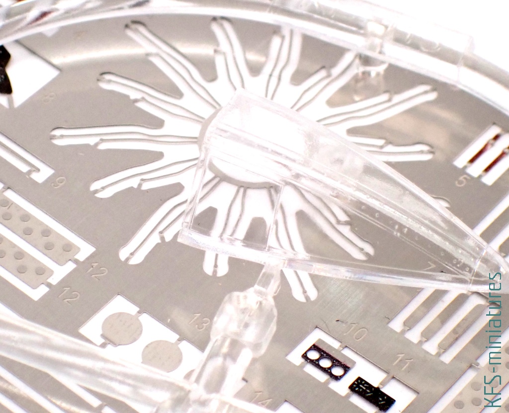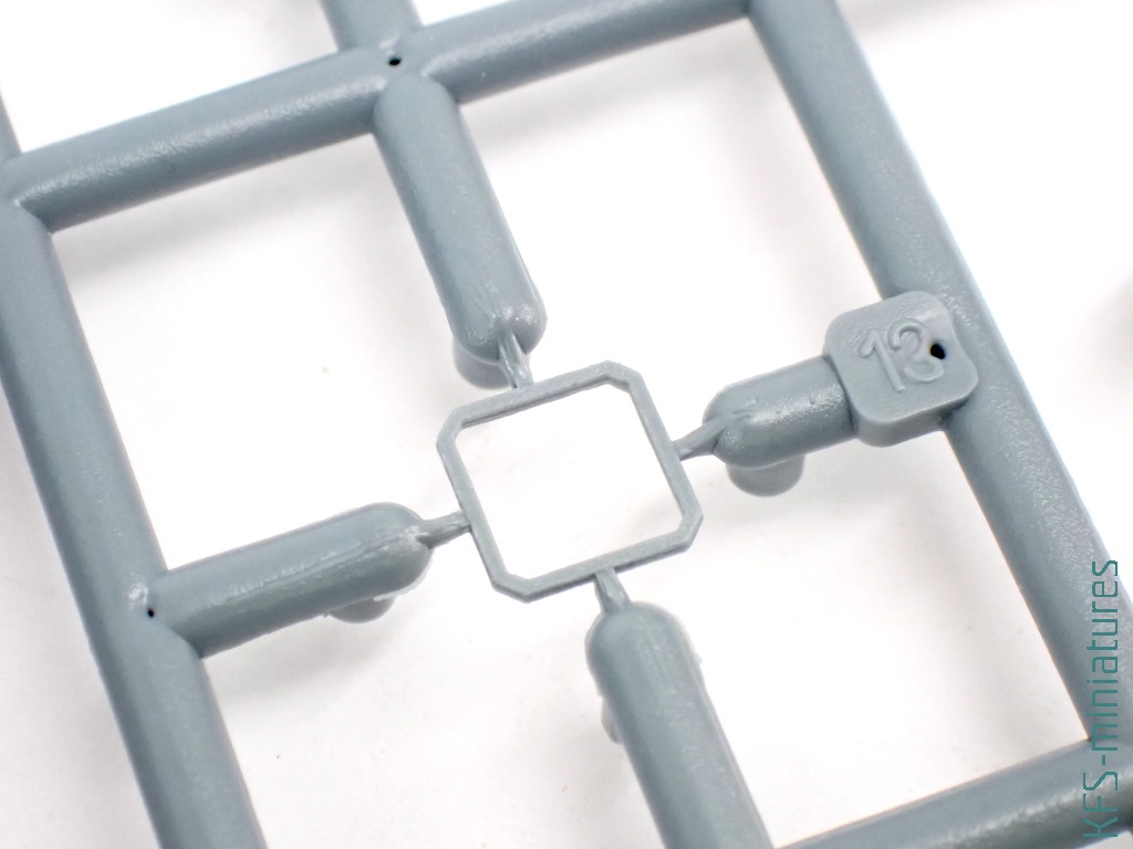 Przy czym na pierwszy rzut oka miniatura prezentuje się całkiem nieźle – dużo drobnych szczegółów w trzech szarych i jednej przeźroczystej ramce. A do tego nawet niemała blaszka fototrawiona