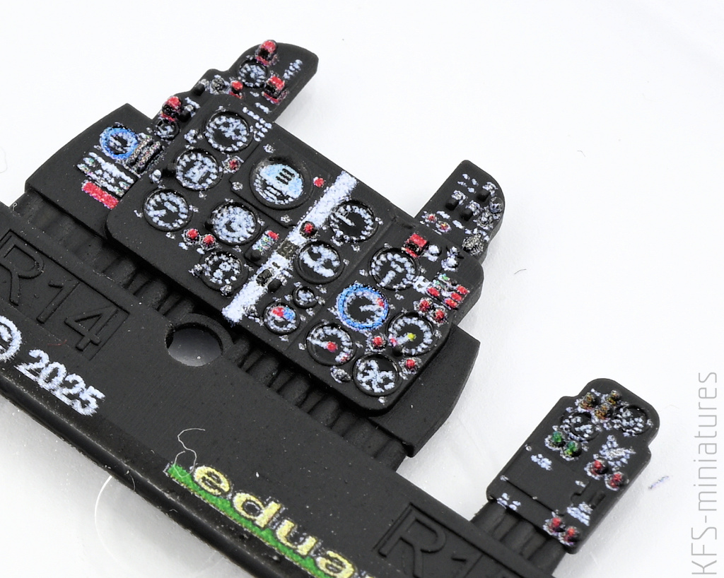 No i kolejna rzecz – tablica przyrządów oraz pasy w postaci kalkomanii 3D. Dwa zestawy, różniące się wyłącznie kolorem paneli sterowania.