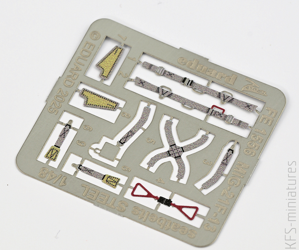 Cóż, same pasy są po prostu przydatne, szczególnie w weekendowych edycjach modeli Eduarda. A w porównaniu z zestawowymi, metalowymi uprzężami dodanymi do ostatniego zestawu F-13, jednak te z kalkomanii mają więcej sensu. Tak czy inaczej, trzeba je raczej przemalować, ale za to ułożenie ich na samym fotelu powinno być łatwiejsze. I dać nieco bardziej naturalny wygląd.