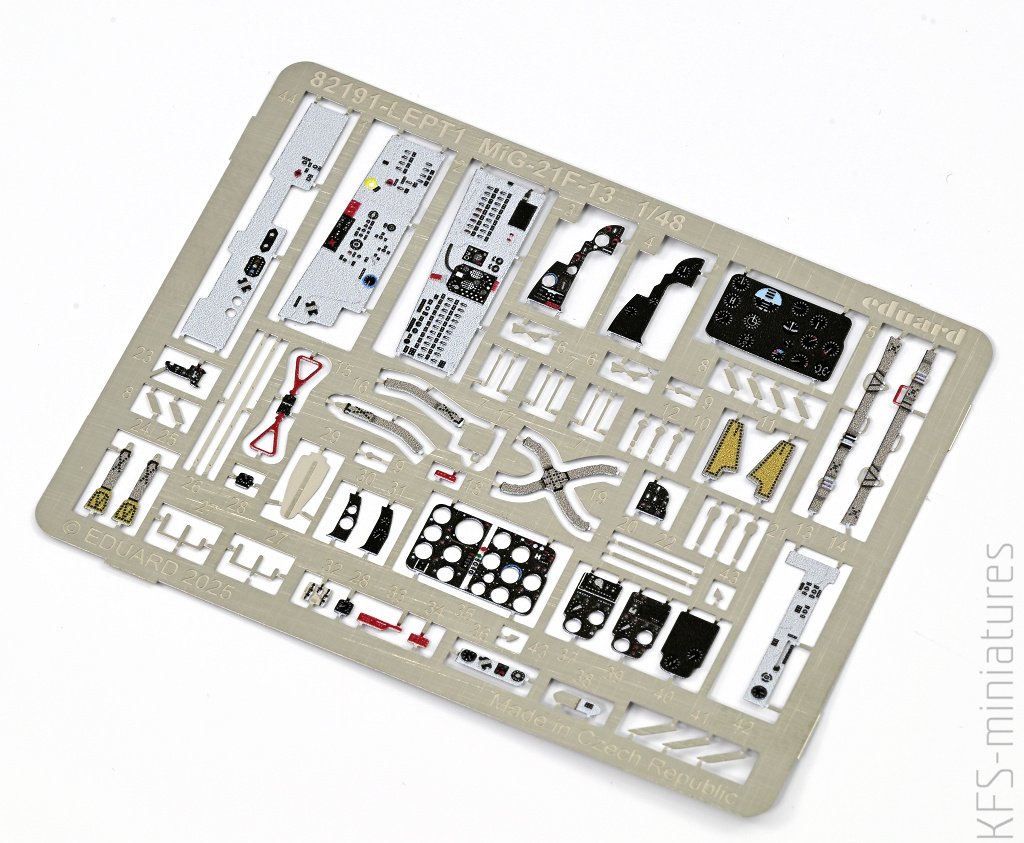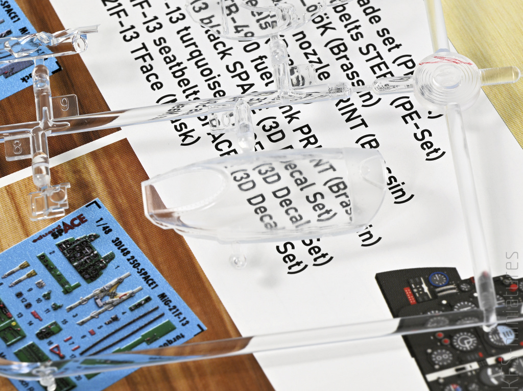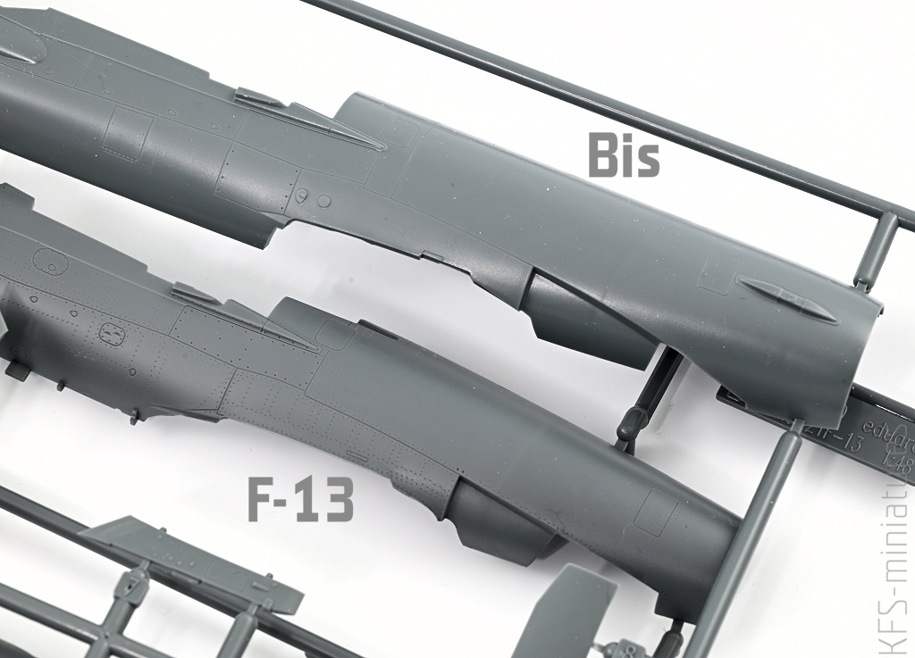 A skoro przy opcjach jestem, to Eduard także na tym polu poszedł znacznie do przodu, w porównaniu do swoich starych MiGów. Bo tych opcji konfiguracyjnych jest całkiem sporo. Poza rzeczoną kabiną, mamy wreszcie w pełni otwieralne wszystkie hamulce aerodynamiczne. Teoretycznie to samo było w poprzednich wersjach 21, tylko że tam przy otwarciu bocznych hamulców trzeba było ciąć kadłub i wklejać w to miejsce odpowiednie panele. W F-13 problem rozwiązano tak jak to od początku powinno wyglądać: mamy gotowe otwory i żadna chirurgia nie jest już potrzebna. Skutkuje to oczywiście koniecznością obróbki i montażu wielu dodatkowych części, ale mimo to ułatwia to pracę.