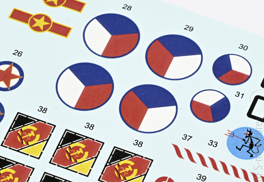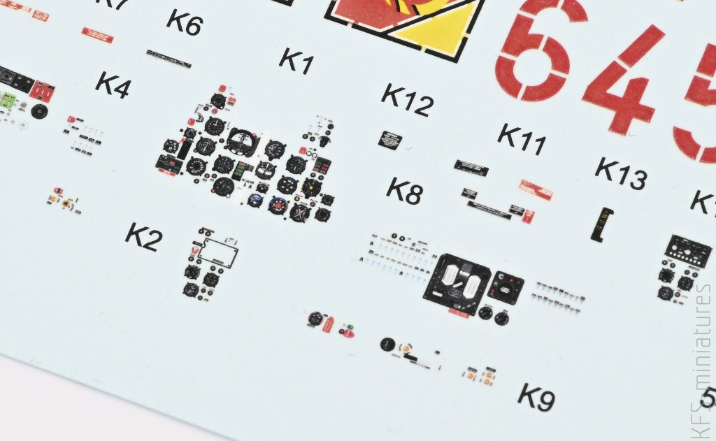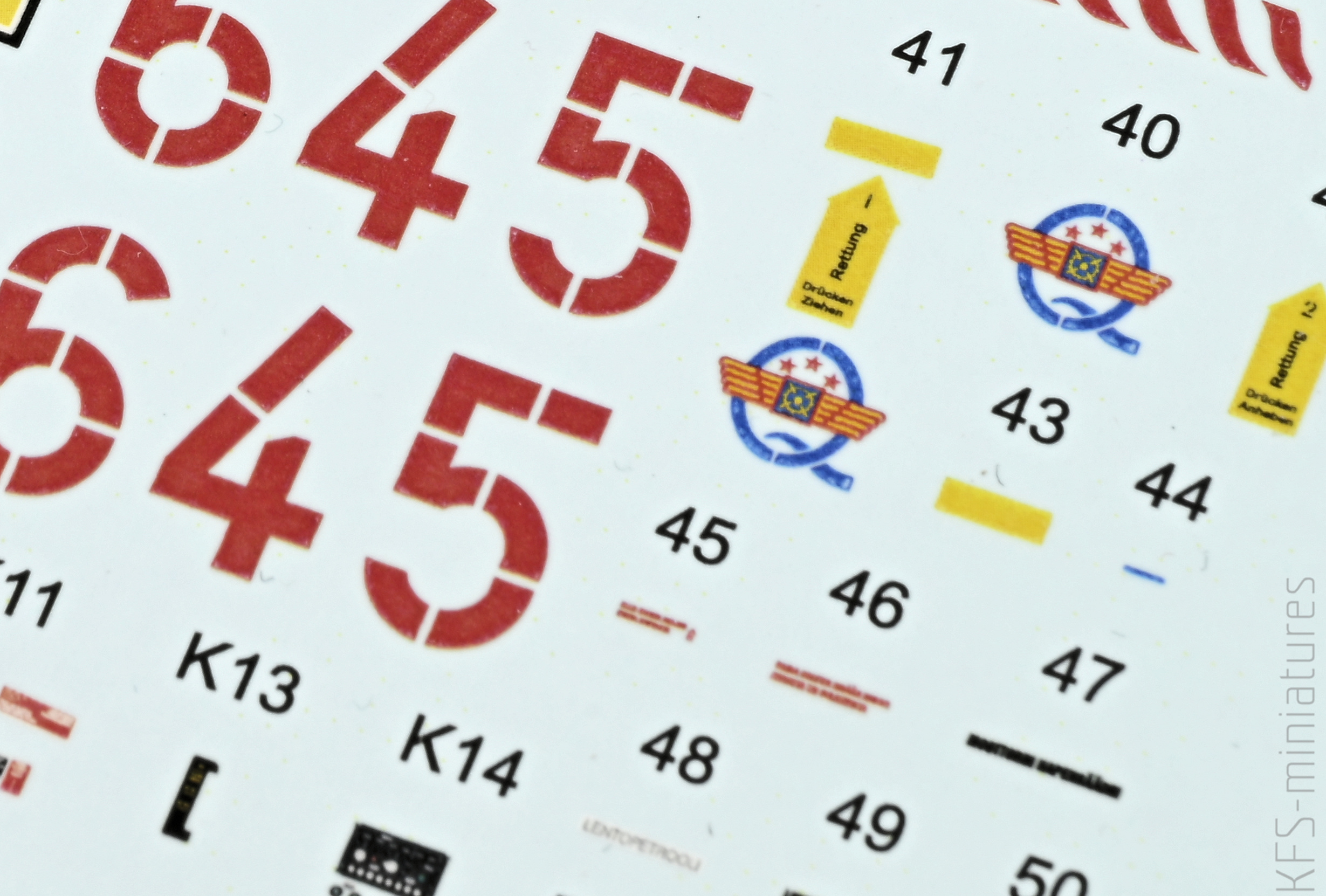 No i na koniec kalkomanie. Kalkomanie Eduarda, obowiązkowo ze „zdejmowalnym” filmem, których osobiście coraz bardziej nie znoszę. Właśnie przez ten nieszczęsny film, który zdjąć trudno, a zostawić nie bardzo można, bo psuje to wygląd modelu. Same kalkomanie, jak to u tego producenta, jakości raczej średniej niż dobrej. Bo i nasycenie kolorów bywa tu problematyczne, a szczegółowość (bardzo licznych) napisów eksploatacyjnych też nie porywa. Za to pochwalić trzeba sporą ilość oznaczeń (co wynika z dużej ilości dostępnych w zestawie malowań) oraz bardzo fajnie wyglądające na oko nakleki do kokpitu, z tablicą przyrządów na czele.