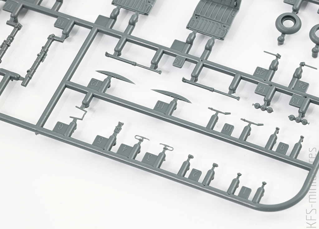 W ogóle jakość wykonania całego zestawu jest zwyczajnie znakomita. Nie znajdziemy tu żadnych nadlewek, czy śladów po wypychaczach w kłopotliwych miejscach. Wszystko jest starannie zrobione, wszystko jest bogato zdetalowane. Jak choćby kabina, czy wnęki podwozia – nie tylko odlane z wieloma szczegółami, ale jeszcze do tego wzbogacone całą furą drobnych elementów, jak okablowanie czy hydraulika.