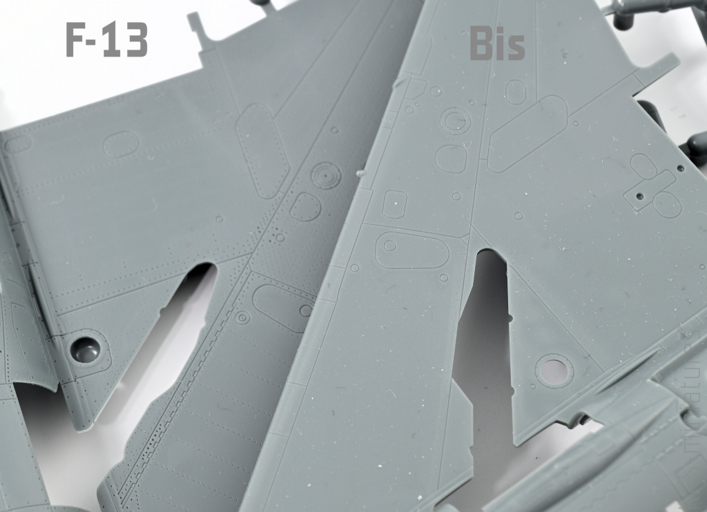 Nie będę specjalnie się rozwodzić, zdjęcia zrobią to za mnie. Na poniższych, dla przykładu, porównajcie sobie skrzydła i fragment kadłuba „starego” MiG-21Bis, z najnowszym produktem Eduarda. I tak jak na kadłubie, także tutaj wszystko jest finezyjne i delikatne, ale jednocześnie bardzo wyraziste. To samo dotyczy linii podziału, czy wszelkiej maści wystających ponad powierzchnię poszycia blach i innych detali. Eduard odwalił tutaj kawał dobrej roboty.