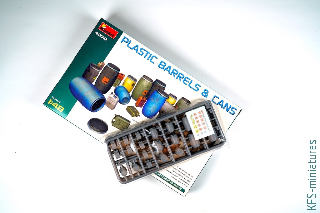 Plastic barrels & cans to kolejny zestaw prostych akcesoriów MiniArtu w skali 1/48. I po metalowych kanistrach z różnych epok, zestawach imitacji również metalowych beczek, na tapet zostały wzięte kanistry i beczki bardziej współczesne, czyli plastikowe.