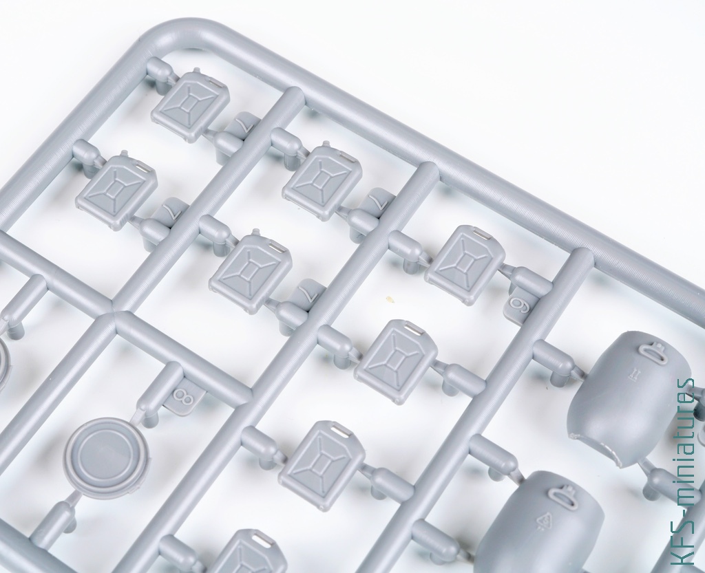 A w woreczku mamy do dyspozycji 4 takie same wypraski, które pozwalają zbudować 8 dużych i 8 mniejszych kompletnych beczek (z wiekami) oraz 16 kanistrów. Łącznie 32 gotowe elementy: