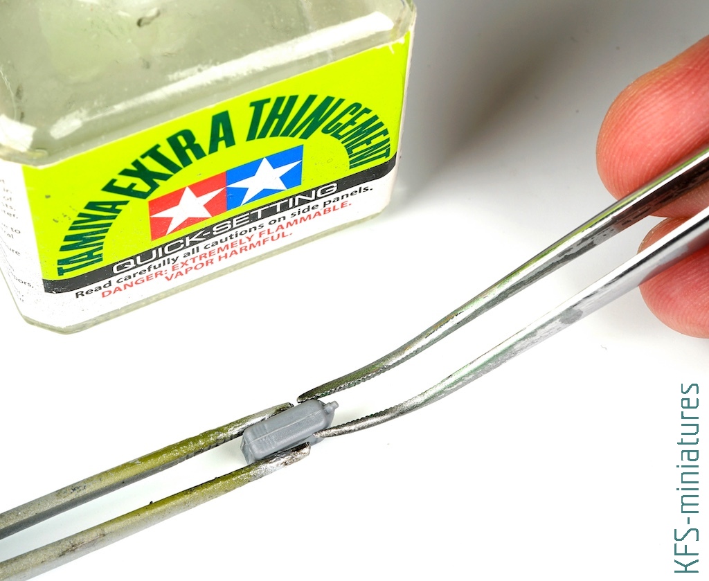 Przy sklejaniu, elementy wymagają minimalnej obróbki nożykiem w miejscach łączenia kanałami wlewowymi, ponieważ kostki wlewowe wychodzą poza obrys elementu.