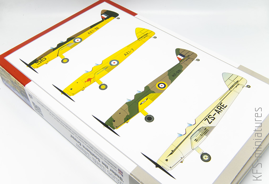 Podtytuł tego opracowania (bo będą kolejne warianty Moth Minor od SH) to “pod Krzyżem Południa”, dlatego na odwrocie pudełka znajdziemy anons czterech malowań z południowej półkuli (lub jak to woli z dolnej części dysku): dwa australijskie, jedno nowozelandzkie i jedno południowoafrykańskie. Wszystkie całkiem atrakcyjne.