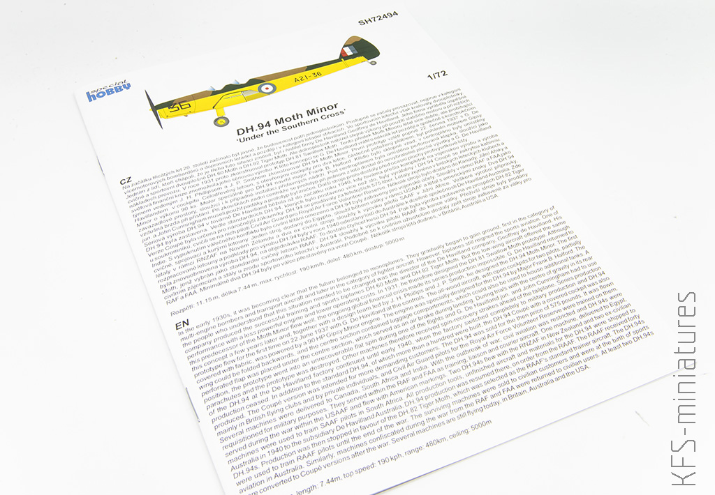 Opisywany model to wydanie zupełnie nowe, a po nowych wydaniach Special Hobby można spodziewać się raczej dobrych rzeczy. Sam samolocik nie jest tak kultowy, jak starsza siostra czyli Tiger Moth, ale równie uroczy. Ta wersja ćmy od De Havillanda miała być samolotem treningowym dla tych, którzy na dwupłatach już raczej latać nie mieli. Dodatkowo miała być łatwa w produkcji, prosta w pilotażu i serwisie i tania jak szczaw. Ze wszystkich tych zobowiązań wywiązała się wzorowo.