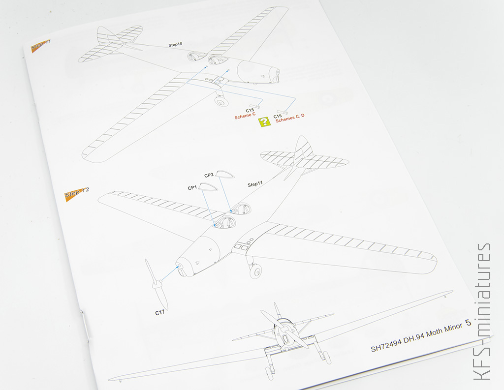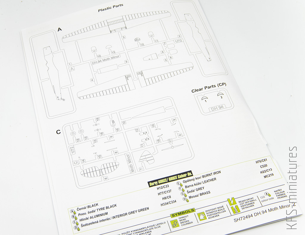 Instrukcja to typowa jakość Special Hobby. Zszyta książeczka na porządnej jakości papierze. Jak zwykle jest mapa wyprasek, kolory sugerowane wg palety Gunze oraz najfajniejsza rzecz, czyli powierzchnie i detale kolorowane na barwy zbliżone do oryginałów. Instrukcja potwierdza również jak prosty to był samolot i jak prosty jest to model. Budowę całości kończymy w zaledwie 12 krokach. Aż trzy strony w tej instrukcji to reklamy innych produktów SH 🙂