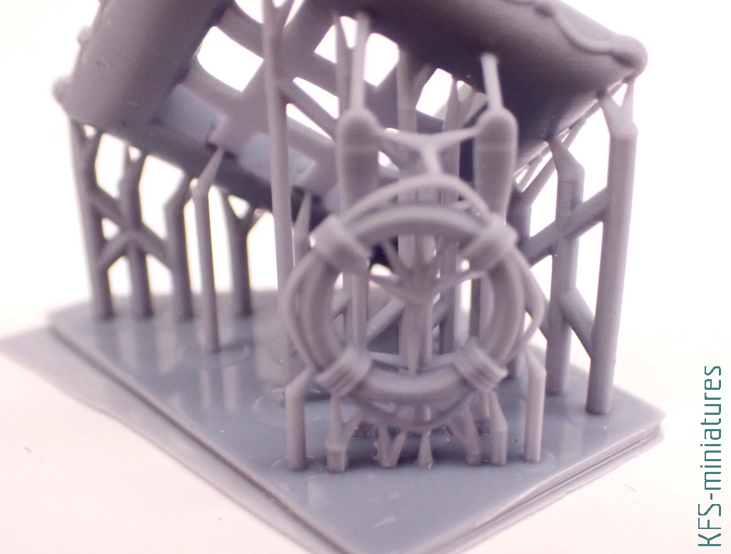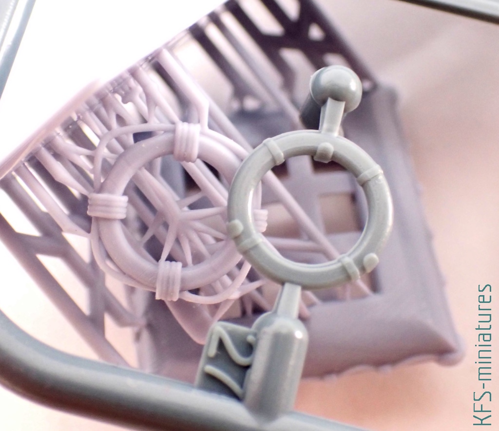 W zestawie tym znajdziemy dodatkowo wiosła i koło ratunkowe. O choć to ostatnie jest dodatkiem, a nie zamiennikiem, to również w jego przypadku widać zasadniczą różnicę w jakości szczegółów pomiędzy żywicą a wtryskiem