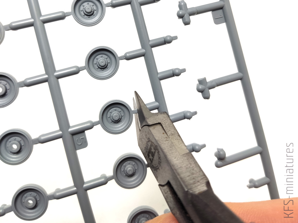 Aby uniknąć uszkodzeń części, wyciąłem je z ramek w kilku krokach, najpierw w większej odległości od detali, aby nie powstała wyrwa w plastiku
